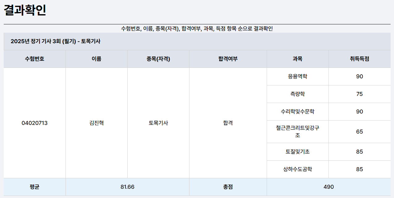 2025년도 토목기사 1회차 합격 수기(전공생)