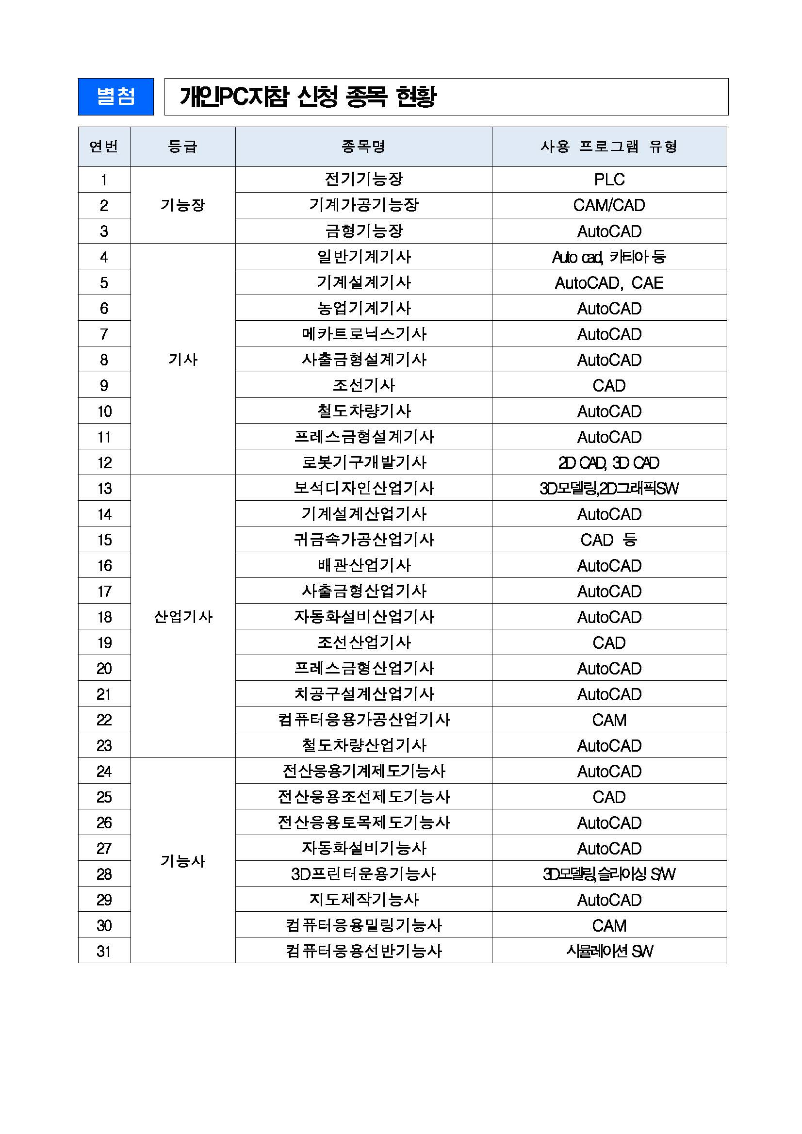 * 시설장비목록이 등록되지 않은 시험장(작업형)은 해당 시험장 관할 한국산업인력공단 지부, 지사로 문의 부탁드립니다.
