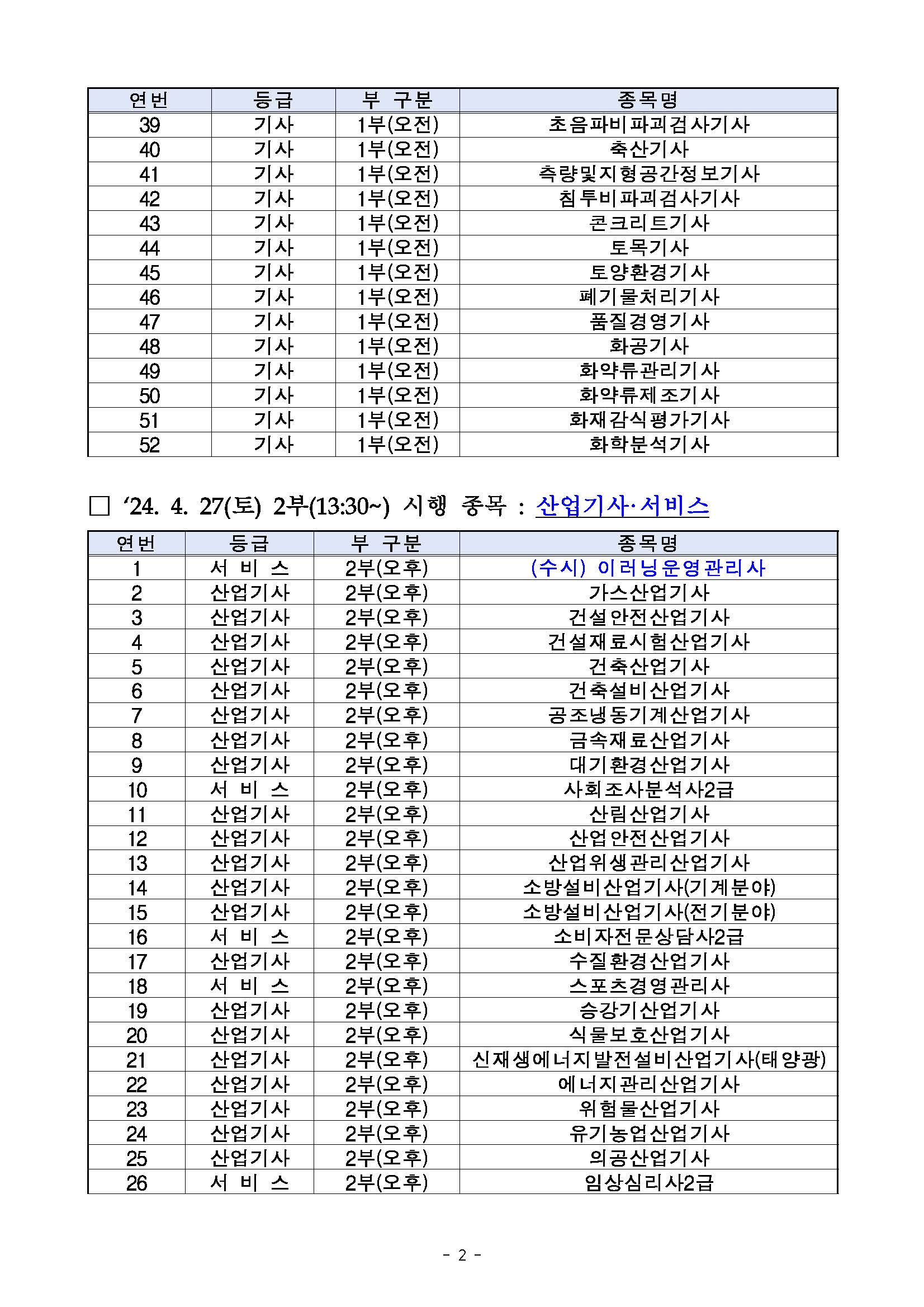 | 이전글 | 2024년도 기사 제2회 필기시험 원서접수 주요 안내사항 |
