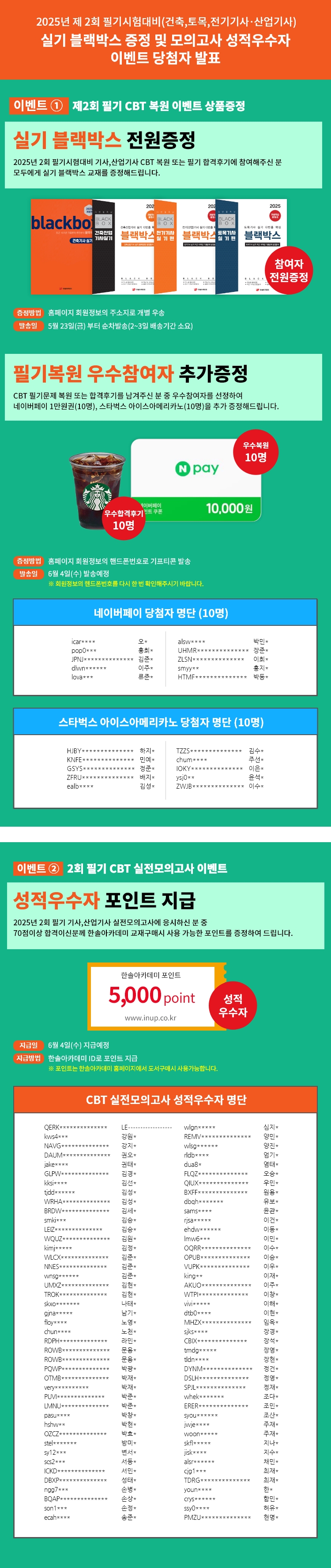 2025년 제2회 필기 CBT 복원 및 모의고사 성적우수자 이벤트 당첨자 발표