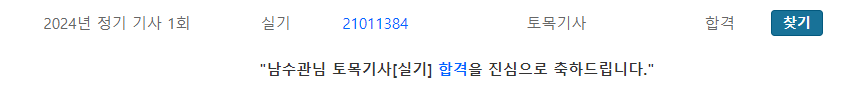 제1회 토목기사 최종합격 / 수강생 : 남 * 관