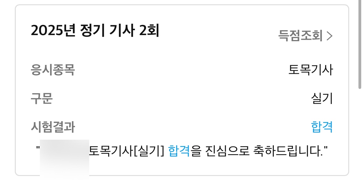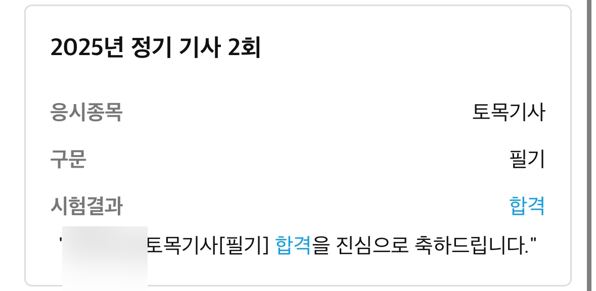 다음글 | [합격수기] 2025년 2회차 토목기사 합격후기(비전공자) |
