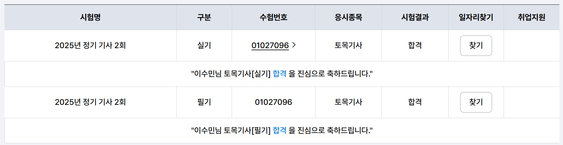 이전글 | [합격수기] 2025년 2회차 토목기사 합격수기 |