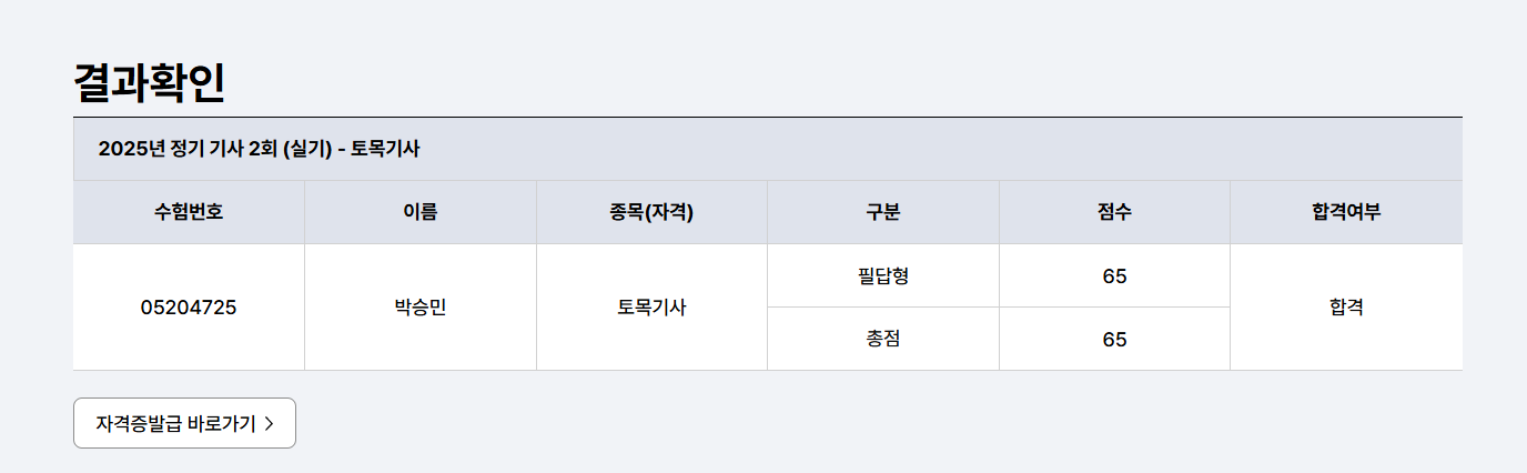 이전글 | [합격수기] 25살의 2025년 제2회 토목기사 합격 수기 |