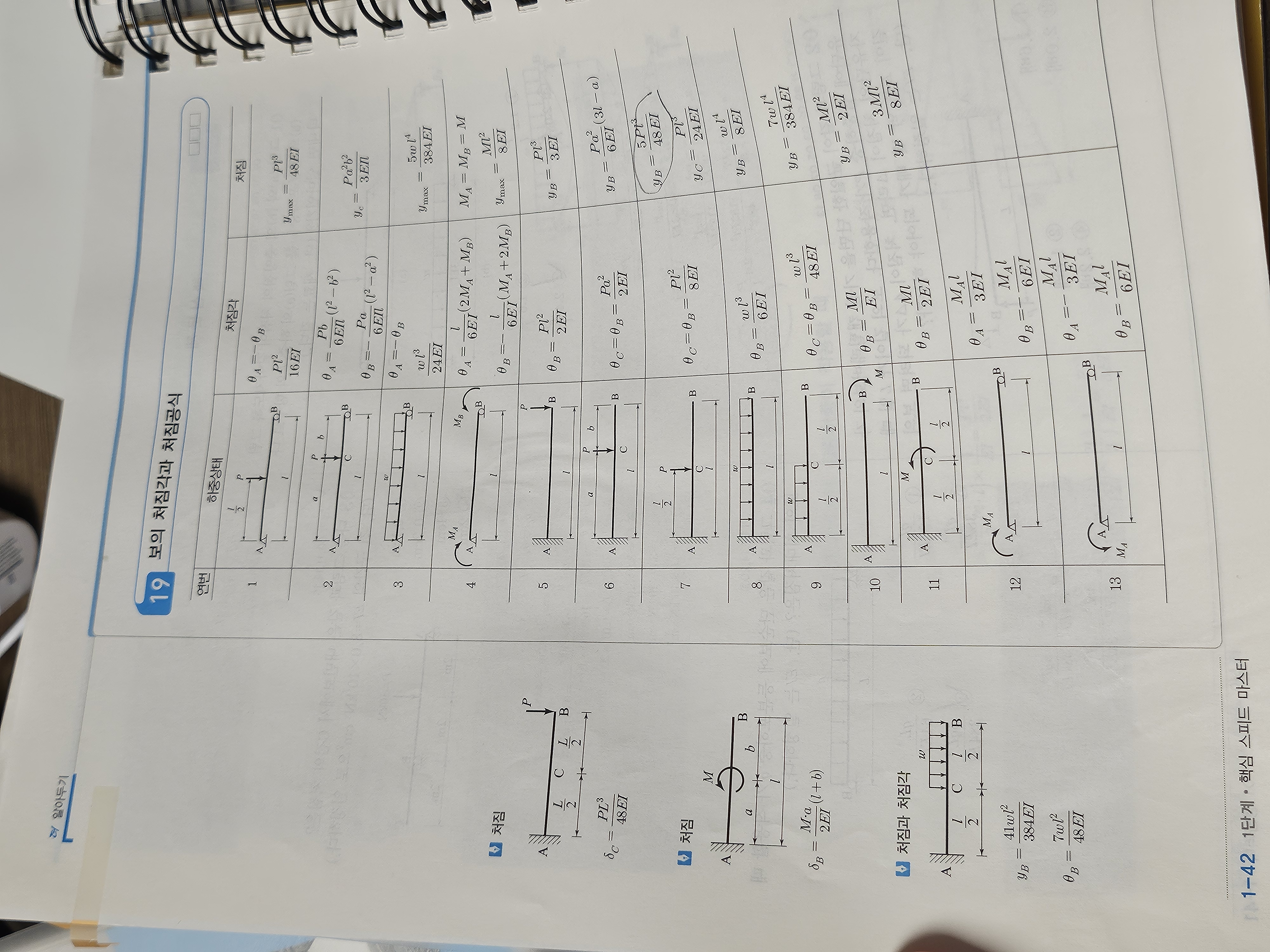 <역학> 무조건 많이 풀어보세요 복습만이 살길입니다. 특히 부정정 구조물 공식들을 전부 다 외우지는 못하겠다 하시면 위 사진 중 23번 적힌 사진에 동그라미 쳐진 5개 공식이라도 꼬오오오오옥 숙지하세요 정말 자주 나오고 얘네만 알고있어도 시간 단축 많이 됩니다. 보 처짐 y와 처짐각 숫자 헷갈리지 마시고요 부끄럽지만 전 그거 헷갈려서 하나 틀렸습니다...