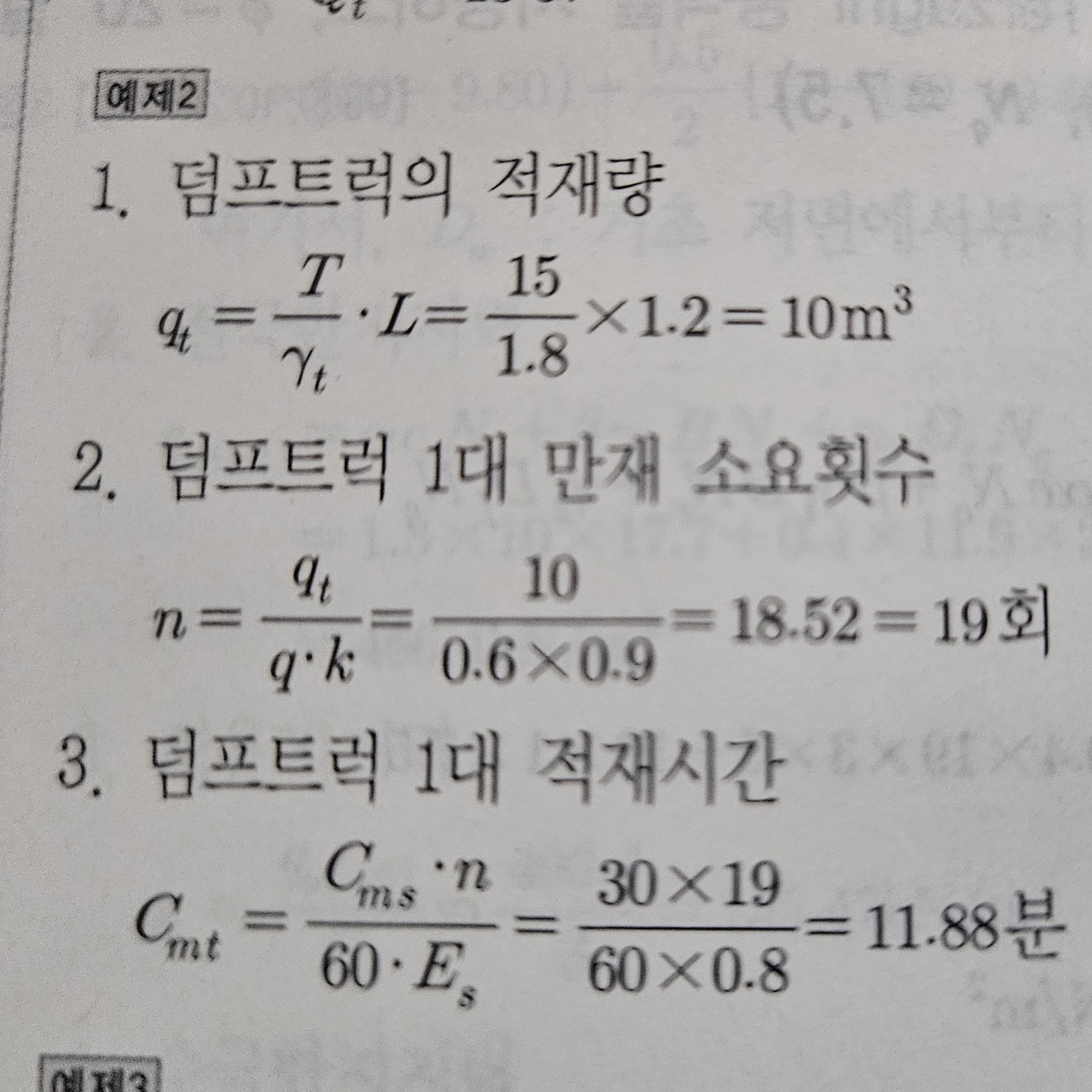 백호를 사용하여 덤프트럭에 가득 찰 때까지 몇번을 왕복하는지 즉, n값을 사용해야 합니다..