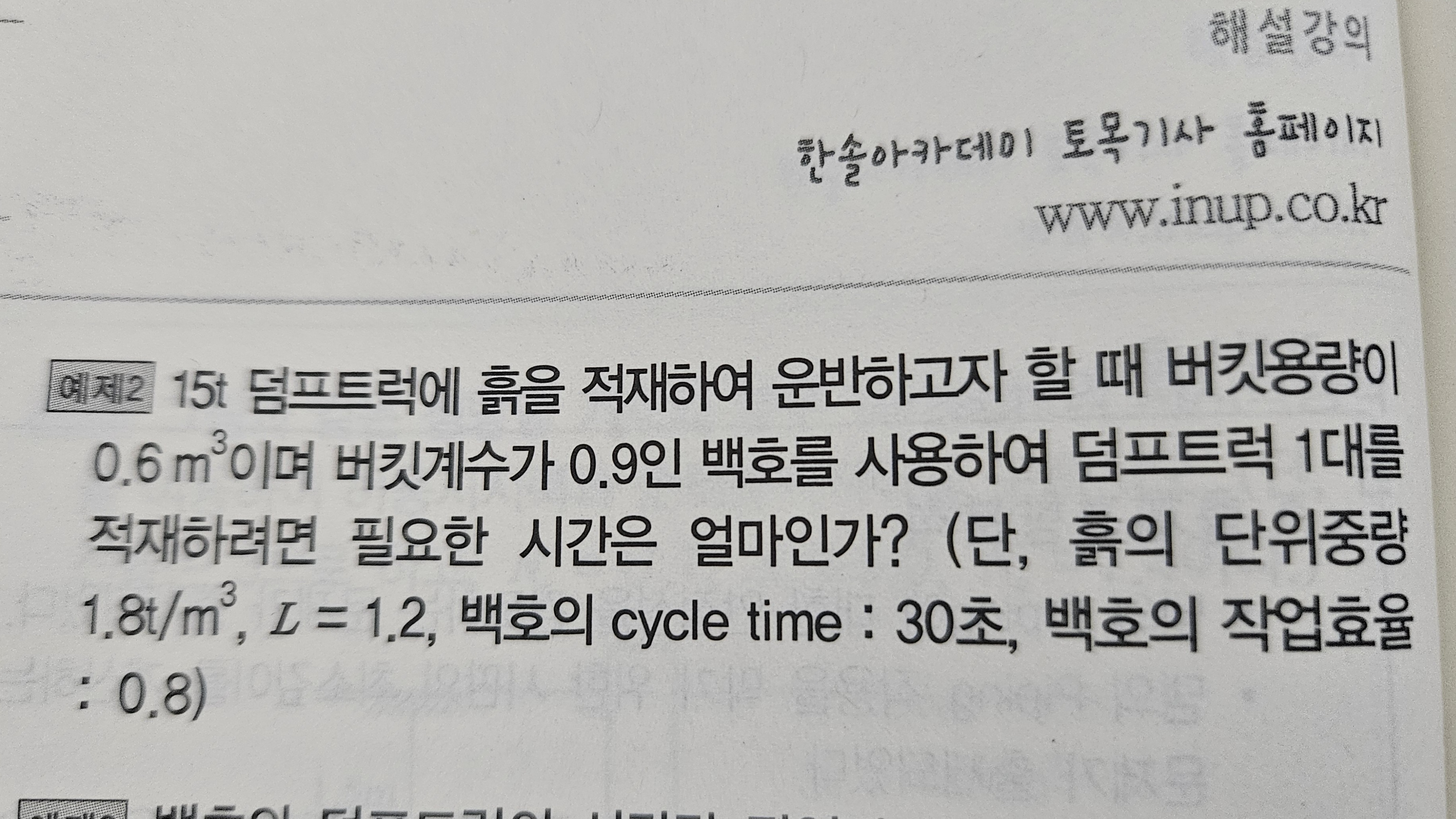 (덤프트럭적재량/백호의시간당작업량)*60분 으로 계산을 했는데요.