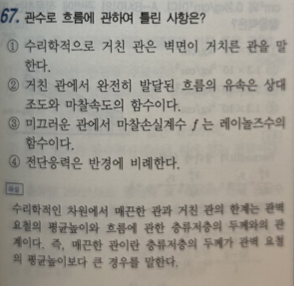 -67번 거친관에서는 점성이 무시되고 거칠기크기에 따라 흐름이 결정되니까 유속을 나타내려면 마찰속도도 포함되는게 맞나요?