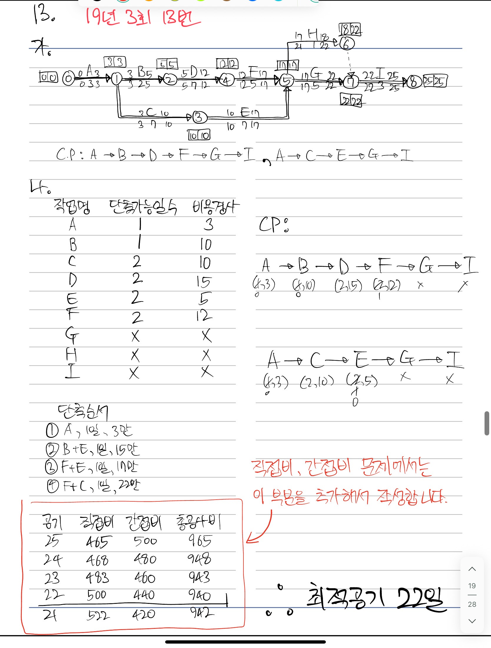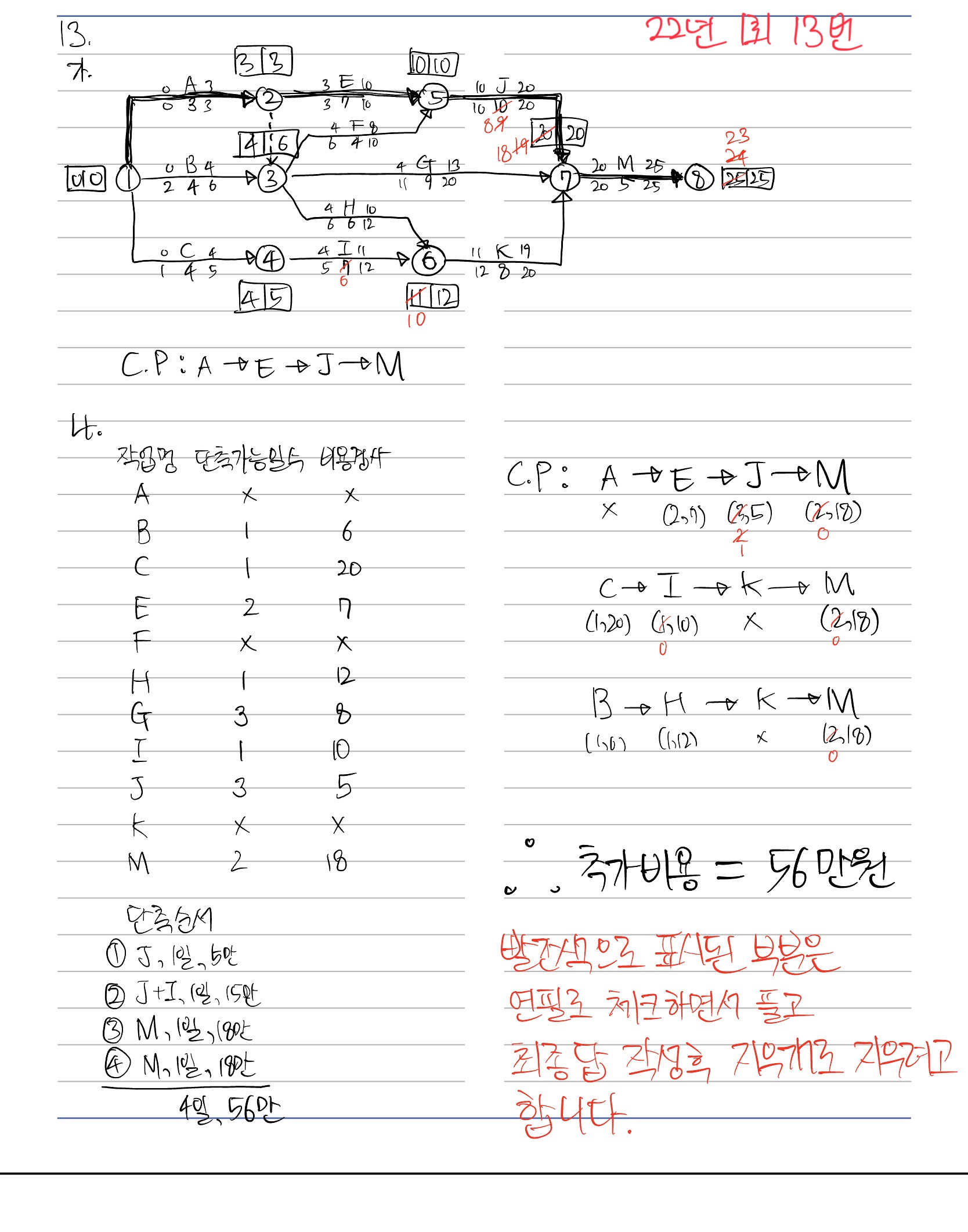 두번째사진과 세번째사진은 공정표문제 산출근거에 대한 나름의 최적화를 했는데 실전에서도 저대로 적어내도 문제가 없을지 확인을 받고 싶어서 여쭤봅니다.