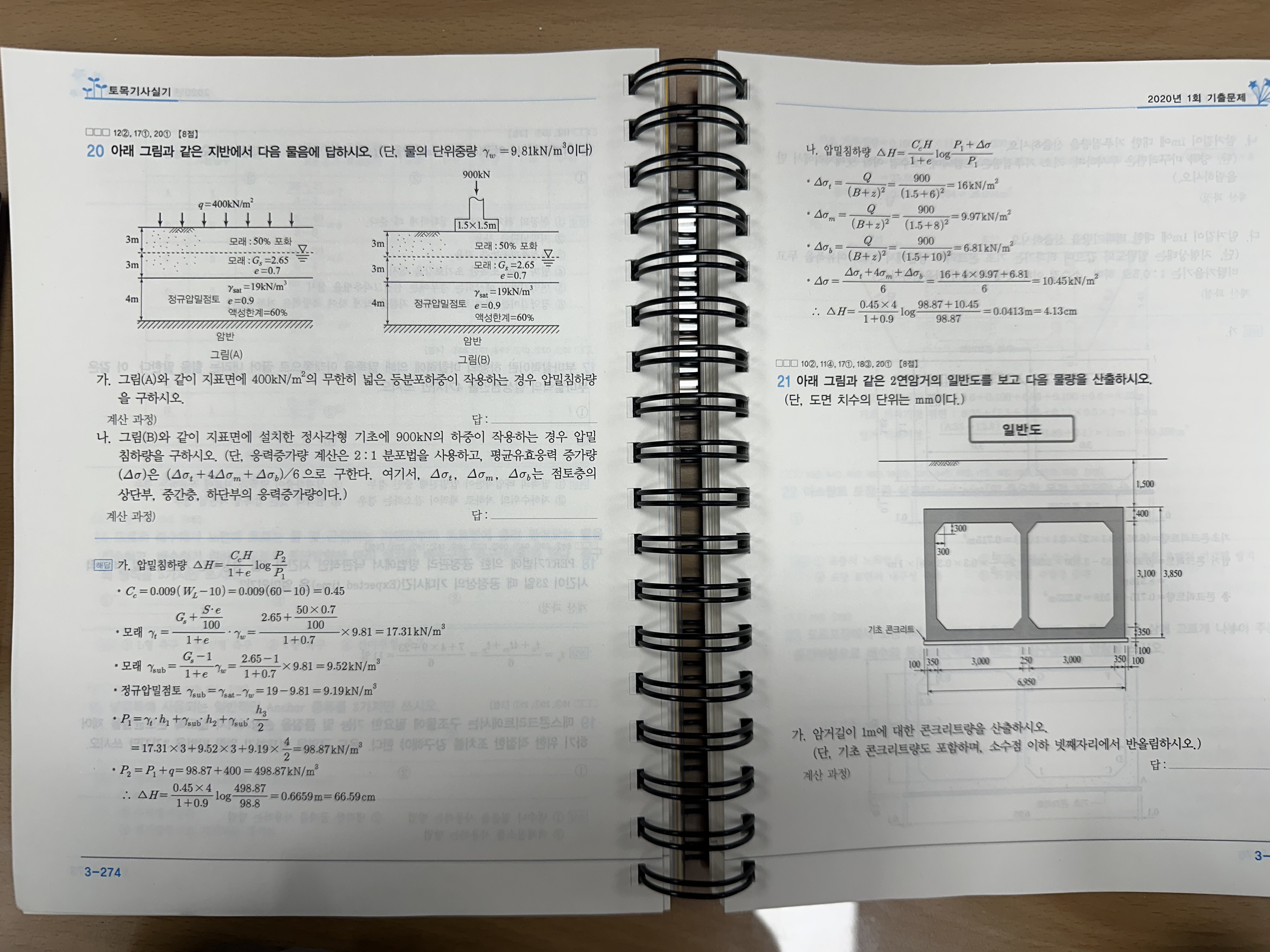 20번 문제 나.의 압밀침하량 구할 때 각 z가 어떻게 계산되는지 궁금합니다..