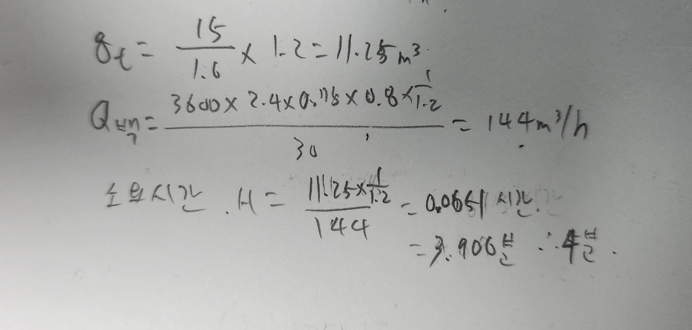 교재에 있는 풀이에는 백호의 적재반복횟수를 구하여 계산을 하는데, 제가 한 것처럼 백호의 한 시간당 작업량을 구한 다음 덤프트럭의 운반토량에 나눠주는 플이로 풀어도 되나요? 답은 똑같게 나왔습니다.
