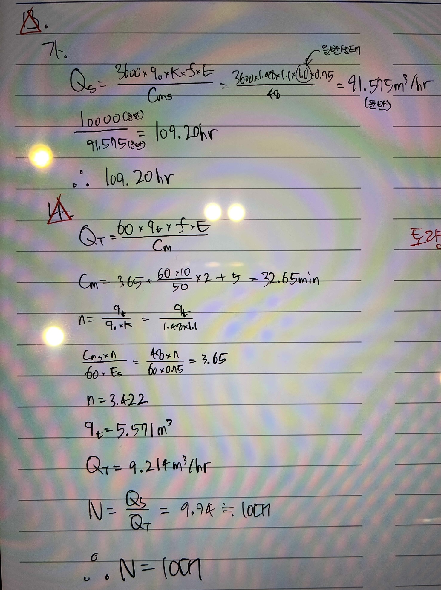 1. 표현하신 방법을 틀렸다고 할 수는 없지만 문제의 조건에 적재시간이 주어져 있는데 적재시간을 다시 산정하여 트럭의 작업량을 산정하였습니다.