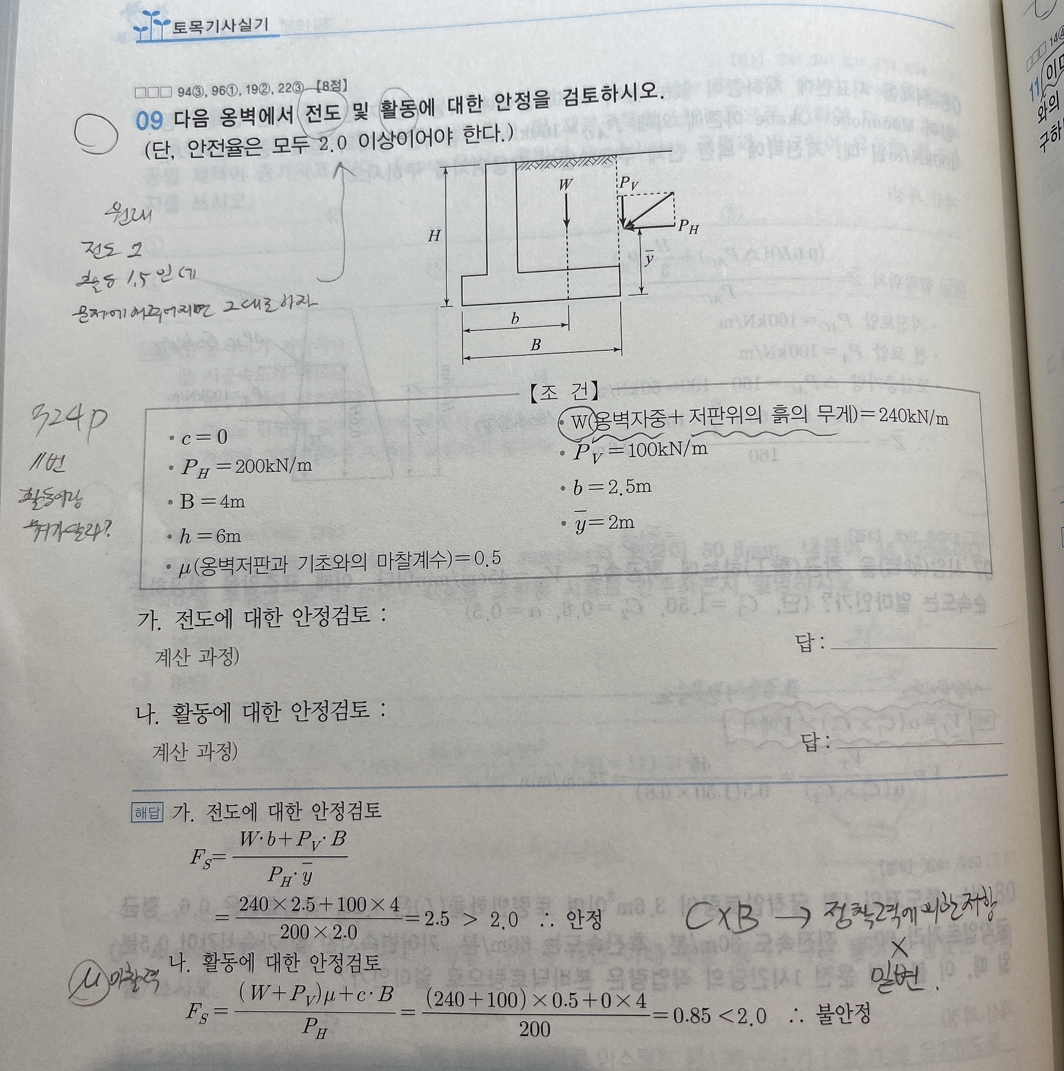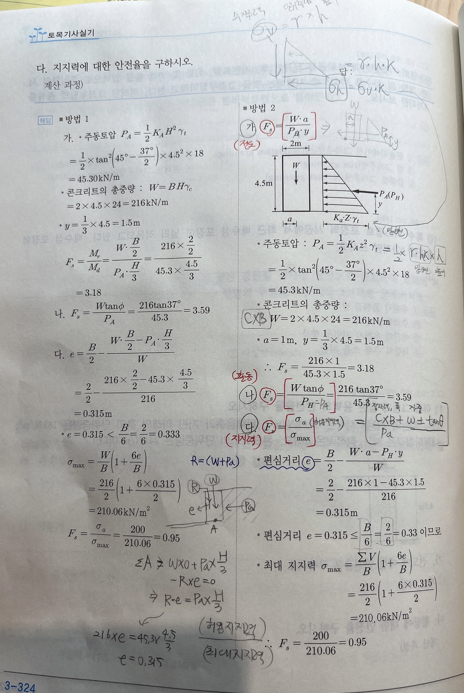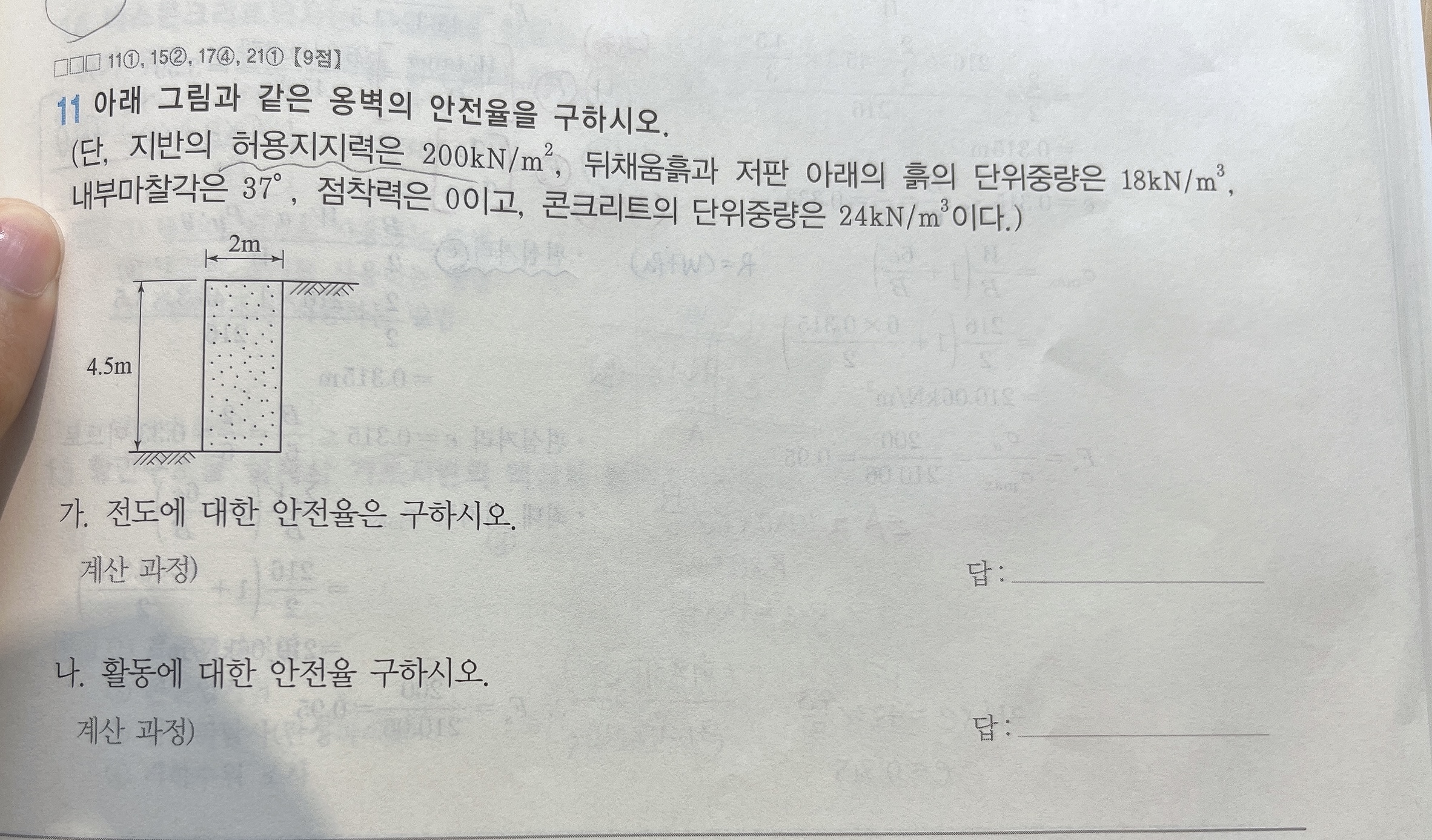 2. 질문하신 두문제 모두 점착력이 0이므로 마찰력 활동에 저항합니다.