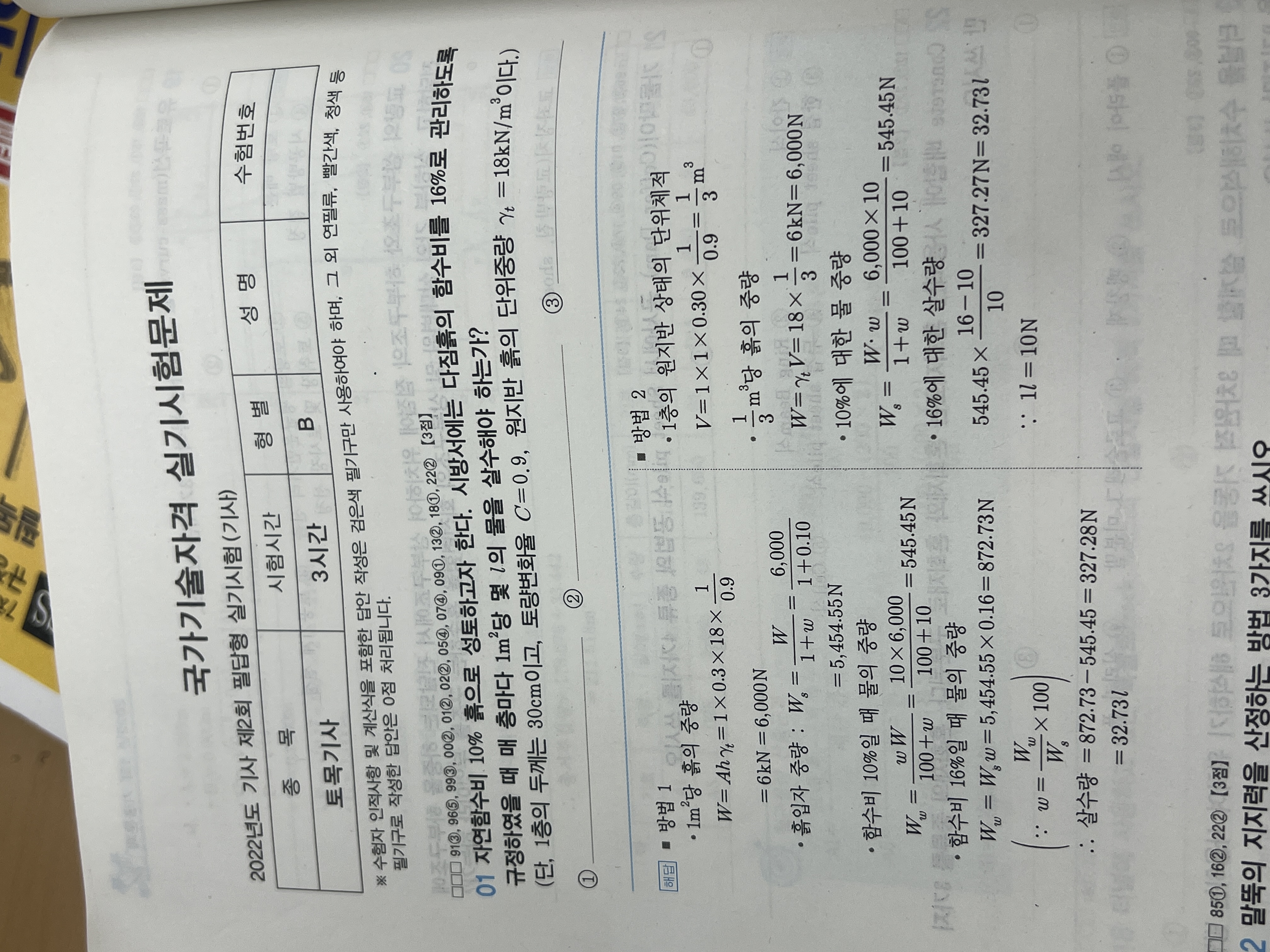 다만, 토목기사에서 물의 단위중량이 9.81(중력가속도를 고려)로 출제되기 때문에 9.81을 적용하여 환산하시는 것을 추천드립니다.