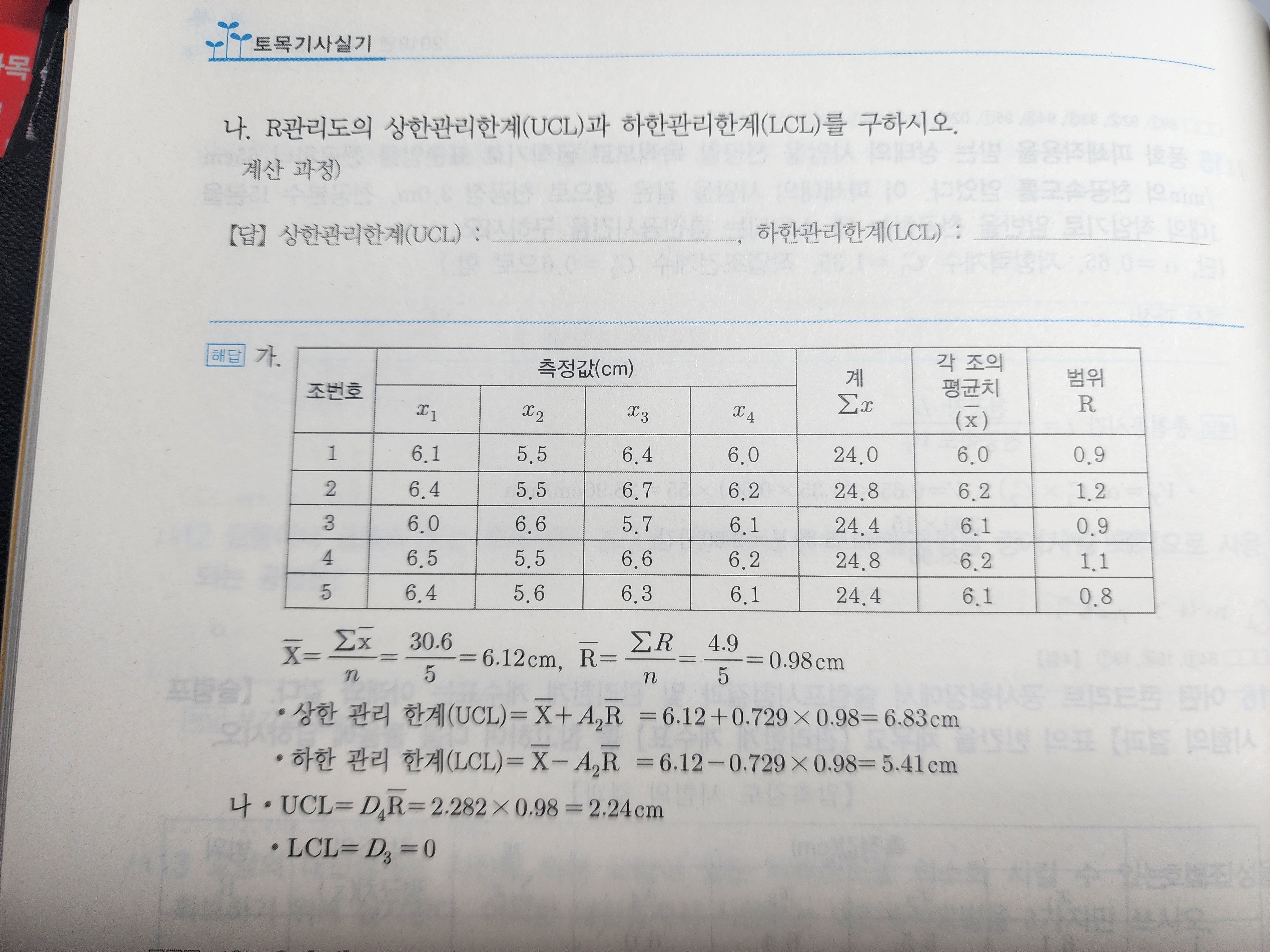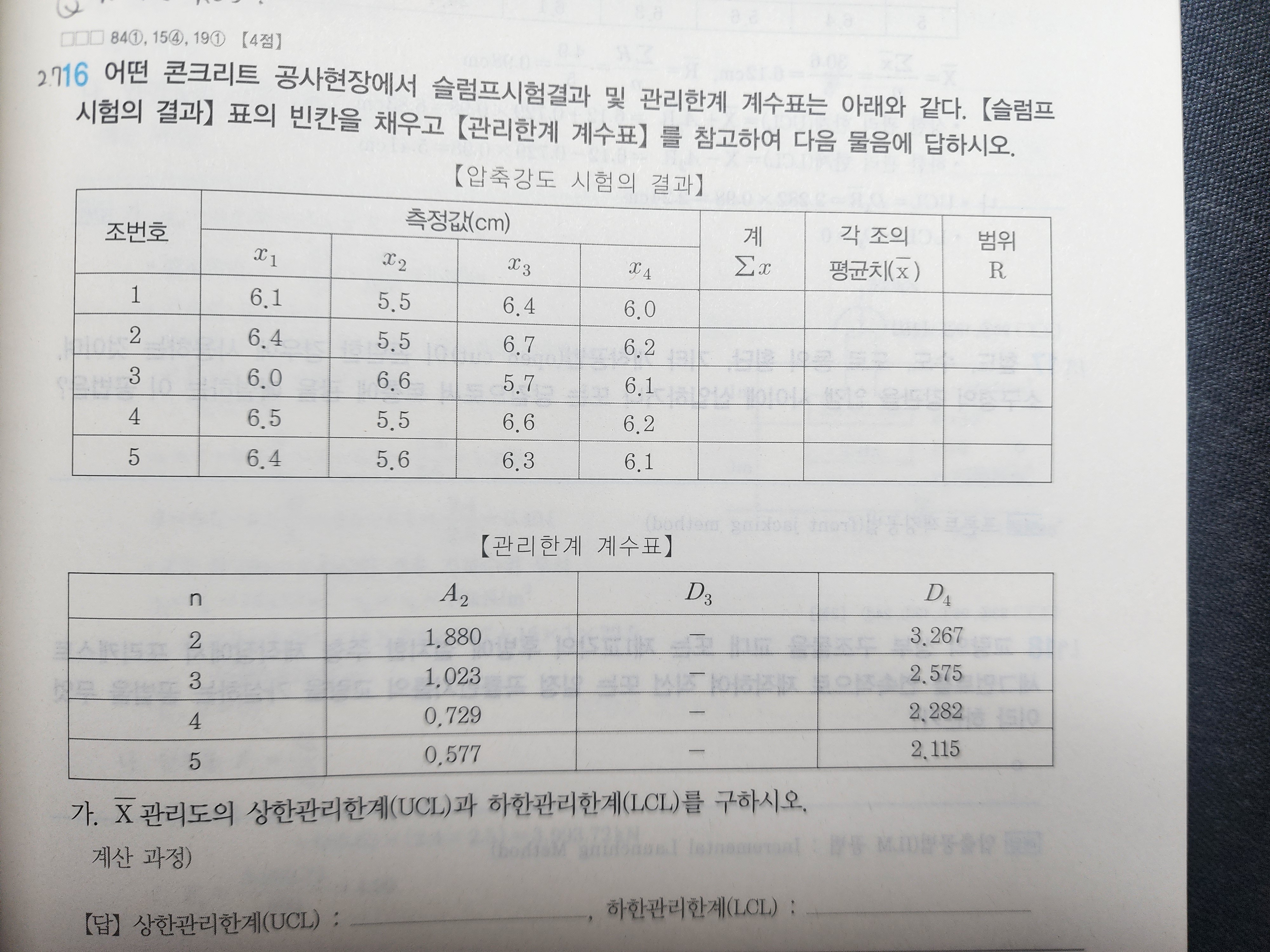 풀이에서 n=5로 풀다가 UCL LCL에선 n=4에 대응되는 값으로 풀고 있습니다. 잘못 표기한 건가요?