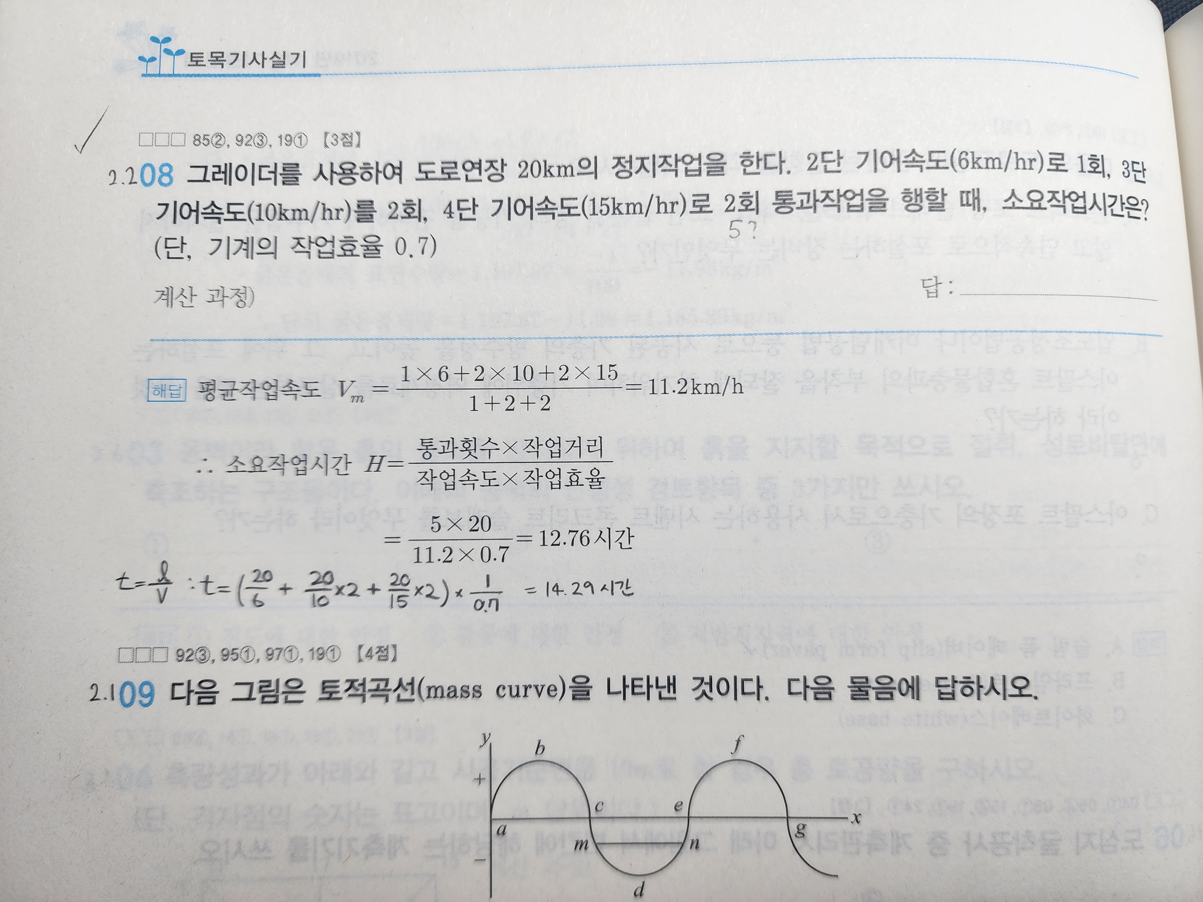 표기가 잘못된 것이 아니라 문제의 조건에 2단 기어속도 1회, 3단 기어속도 2회, 4단기어 속도 2회 통과작업을 한다고 했기 때문에 총 5회가 되는 것입니다.