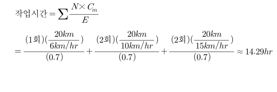 교재의 해설은 이론적인 평균작업속도를 산정하여 문제를 풀이하였고 강의에서 설명드린 방법(질문하신 방법)은 각 작업에 따른 속도를 고려하여 답안을 산출한 것입니다. 이에 최종답의 오차가 발생한 것입니다.