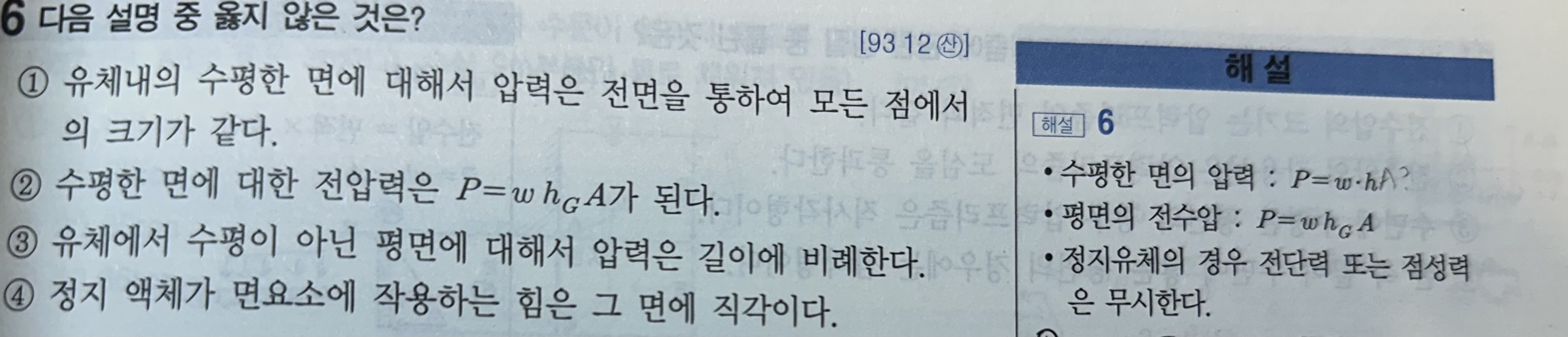 -풀이에 수평한 면의 압력에 P=wh라고 돼있는데 P=whA아닌가요?