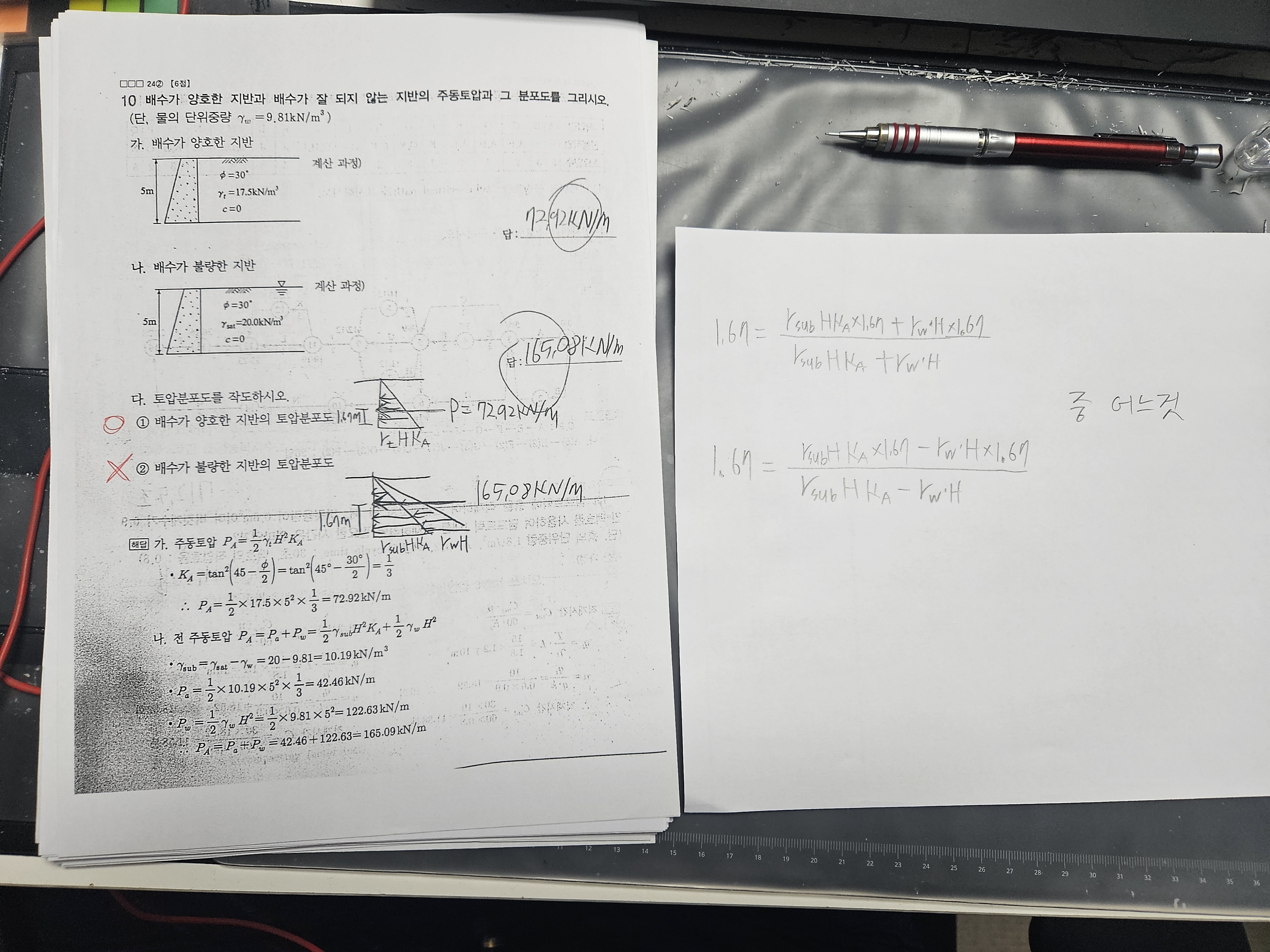 공식의 부호가 문제라면 공식에 각값을 적용해 보면 확인 할 수 있고, 해당문제의 토압의 분포는 삼각형 분포이기 때문에 질문하신 공식으로 풀이할 필요없이 작용점은 옹벽 저면에서 H/3가 됩니다.