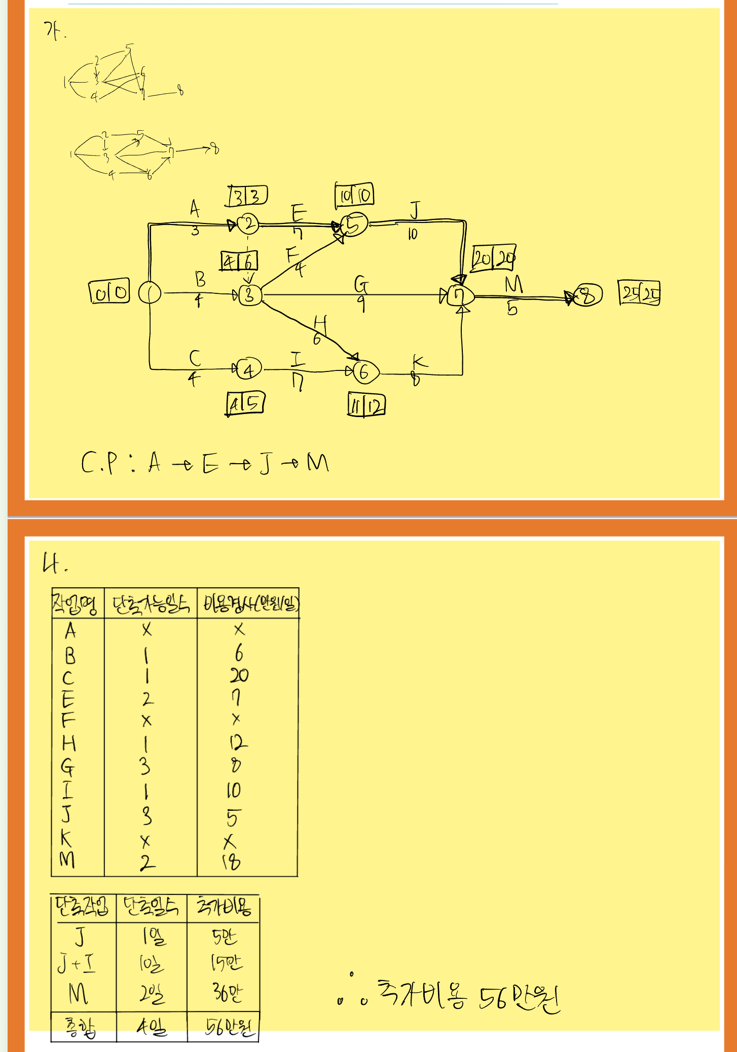 전에 공정관리 문제 풀이과정에 대해 질문드렸었는데