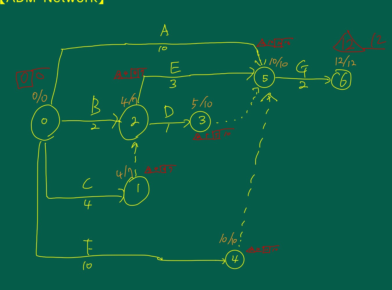 강의중에 공정표를 그려주셨는데 혹시 제가 그린대로 하면 안되는지. 그리고 안된다면 그 이유에 대해서 설명해주시면 감사하겠습니다. d와 e의 위치만 바꿔서 그렸는데 cpm 숫자 쓸때 값이 교수님께서 알려주신 답과 다르게 나와서 여쭤봅니다. 그리고 문제 없다면 해당 사진에 cpm 숫자 기입이 강의랑 다른데 잘 기입된건지 확인 부탁드립니다.