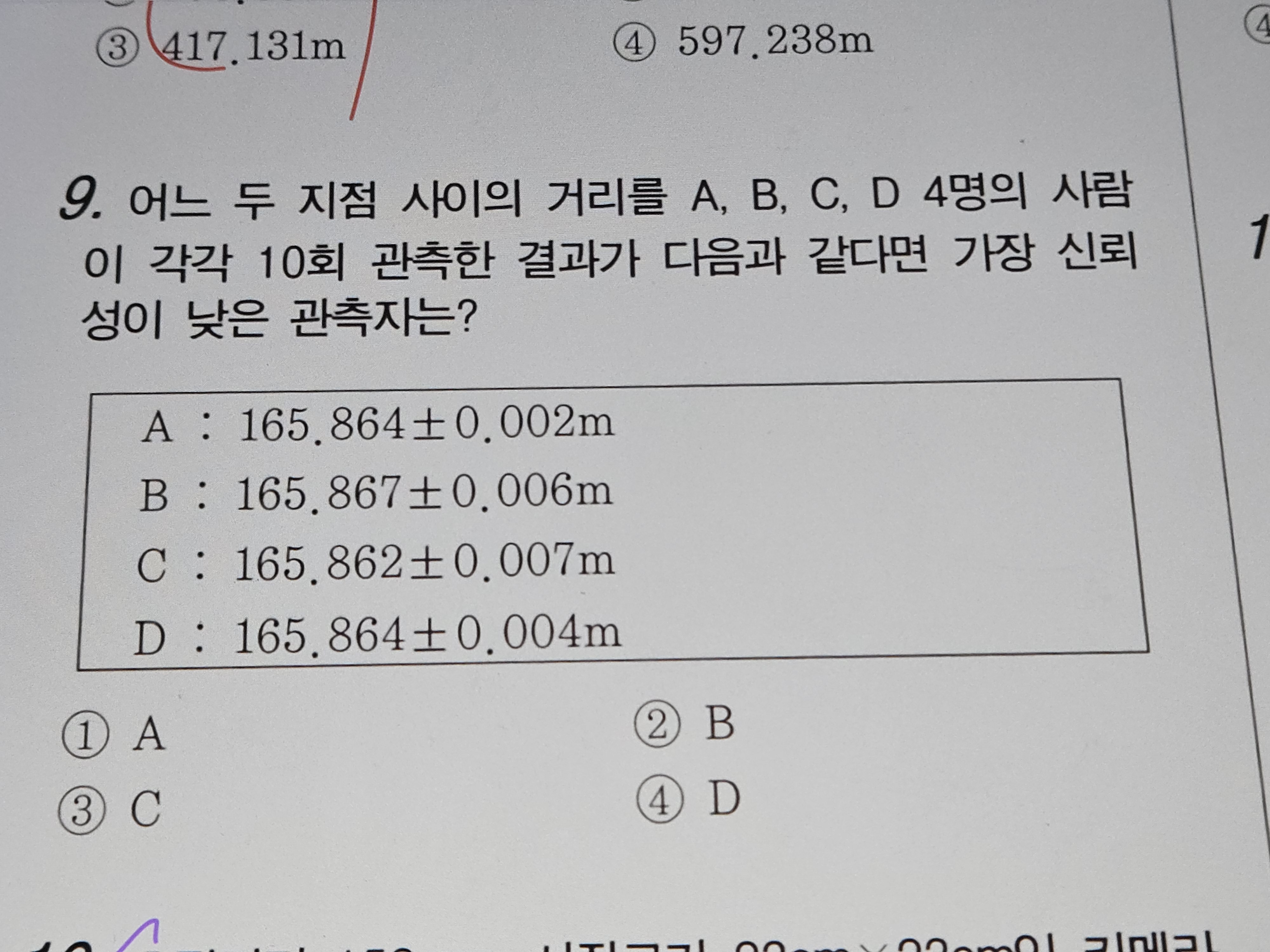 신뢰도 관점에서는 정밀도가 높다 = 1/m에서 m값이 크다 = 경중률이 크다 같은 의미인가요?