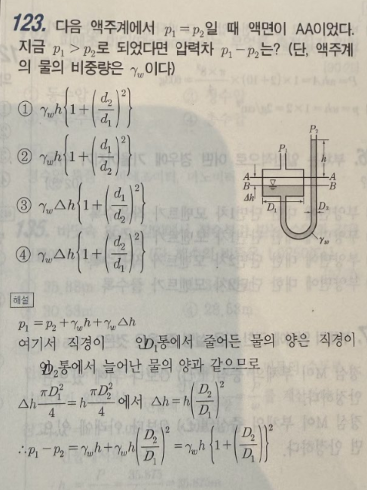 AA 액면을 등압면으로 보고 풀이하게 되면 해설은 다음과 같습니다.