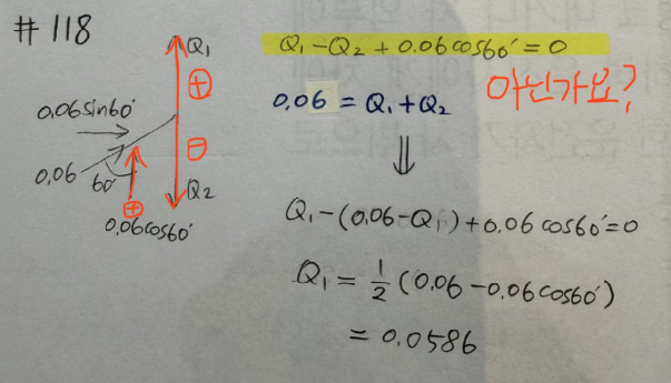 Q5. y축 +성분은 Qcos60와 Q1, -성분은 Q2인데 교재에는 Qcos60 = Q1 + Q2로 나와있나요?