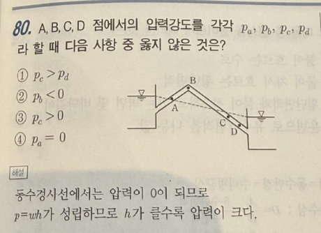 3. B점은 동수경사선 위에서 발생되는 사이폰으로 부압(-)이 발생하게 됩니다.