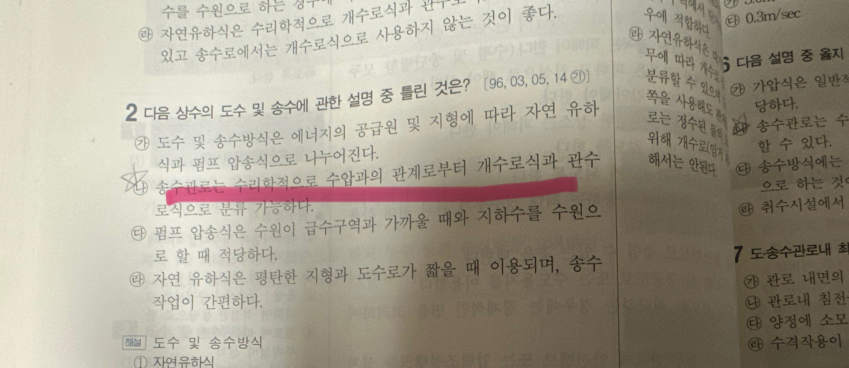 2. 송수관로는 원칙적으로 관수로로 알고있는데 분류는 개수로 관수로 둘다 가능한가요?