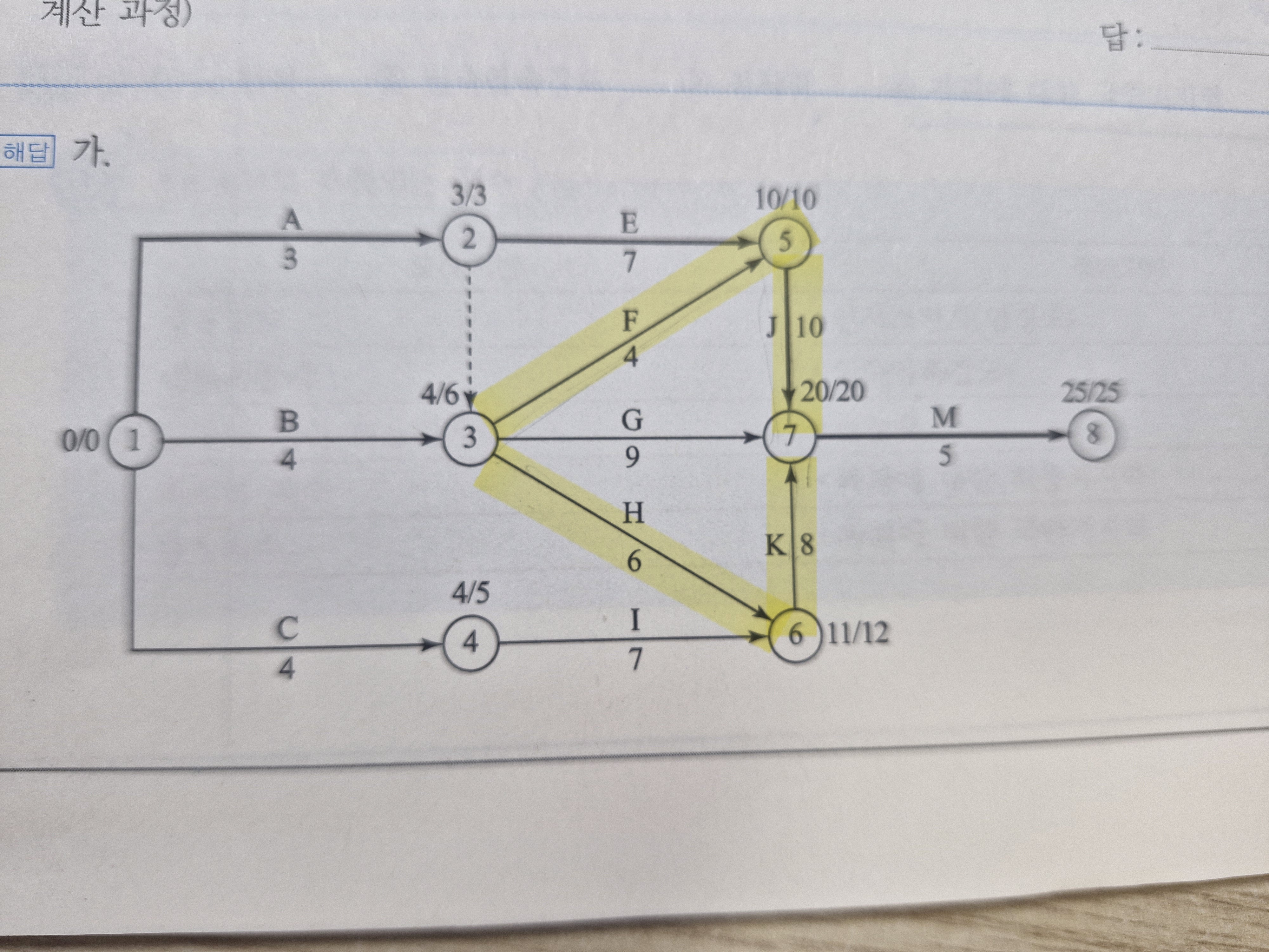 3일 단축시 AEJM, CIKM, BHKM경로에서 비용경사가 가장 적은 M작업을 단축하게 됩니다.