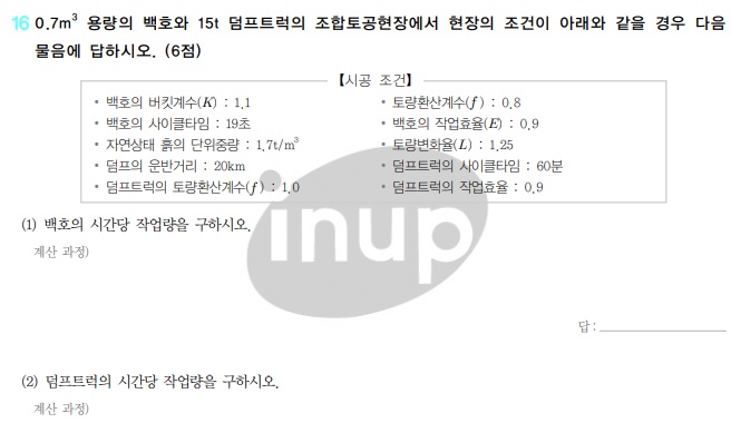 2023년 3회 기출문제 덤프트럭 시간당 작업량 구하는 문제에서