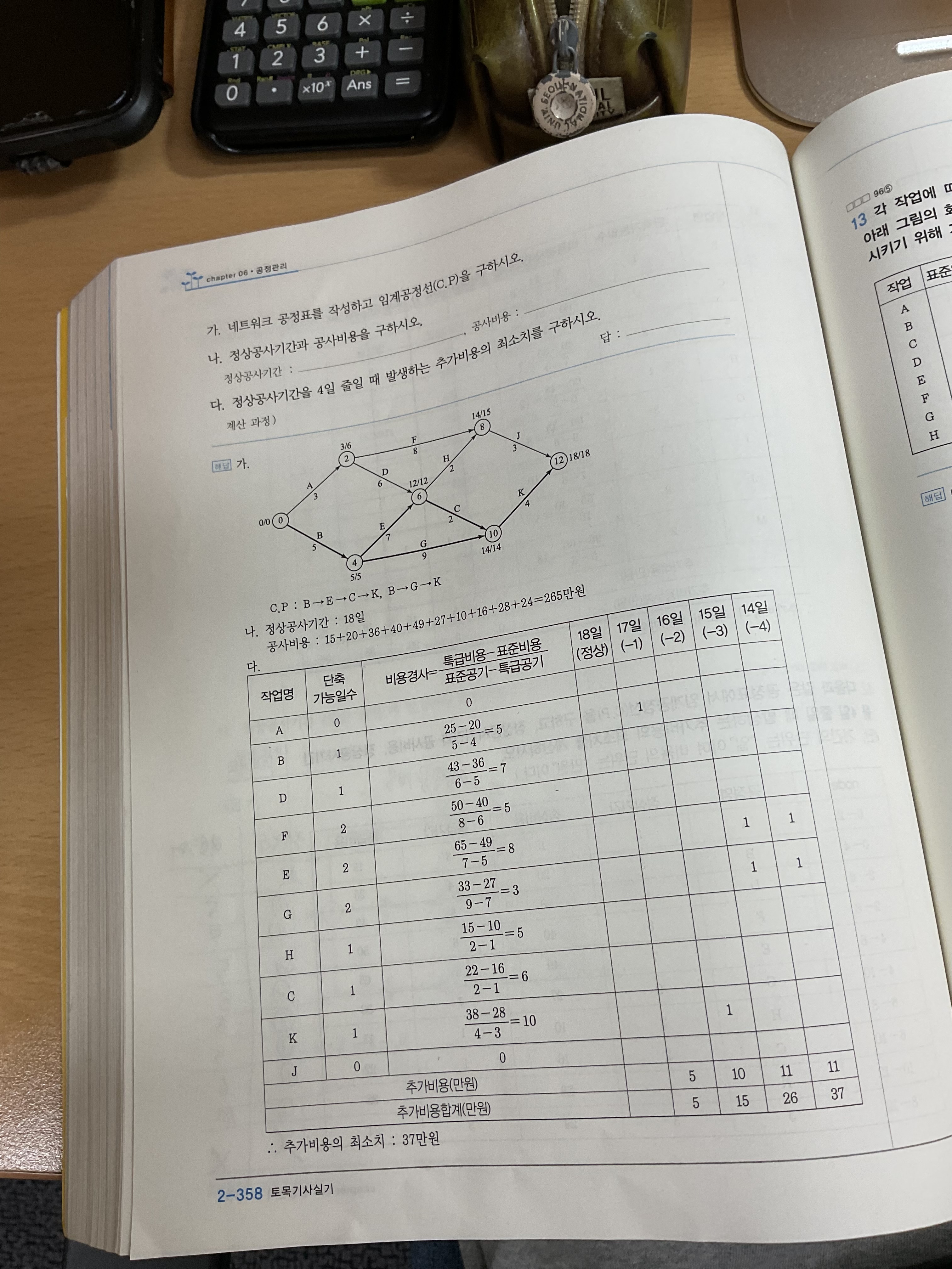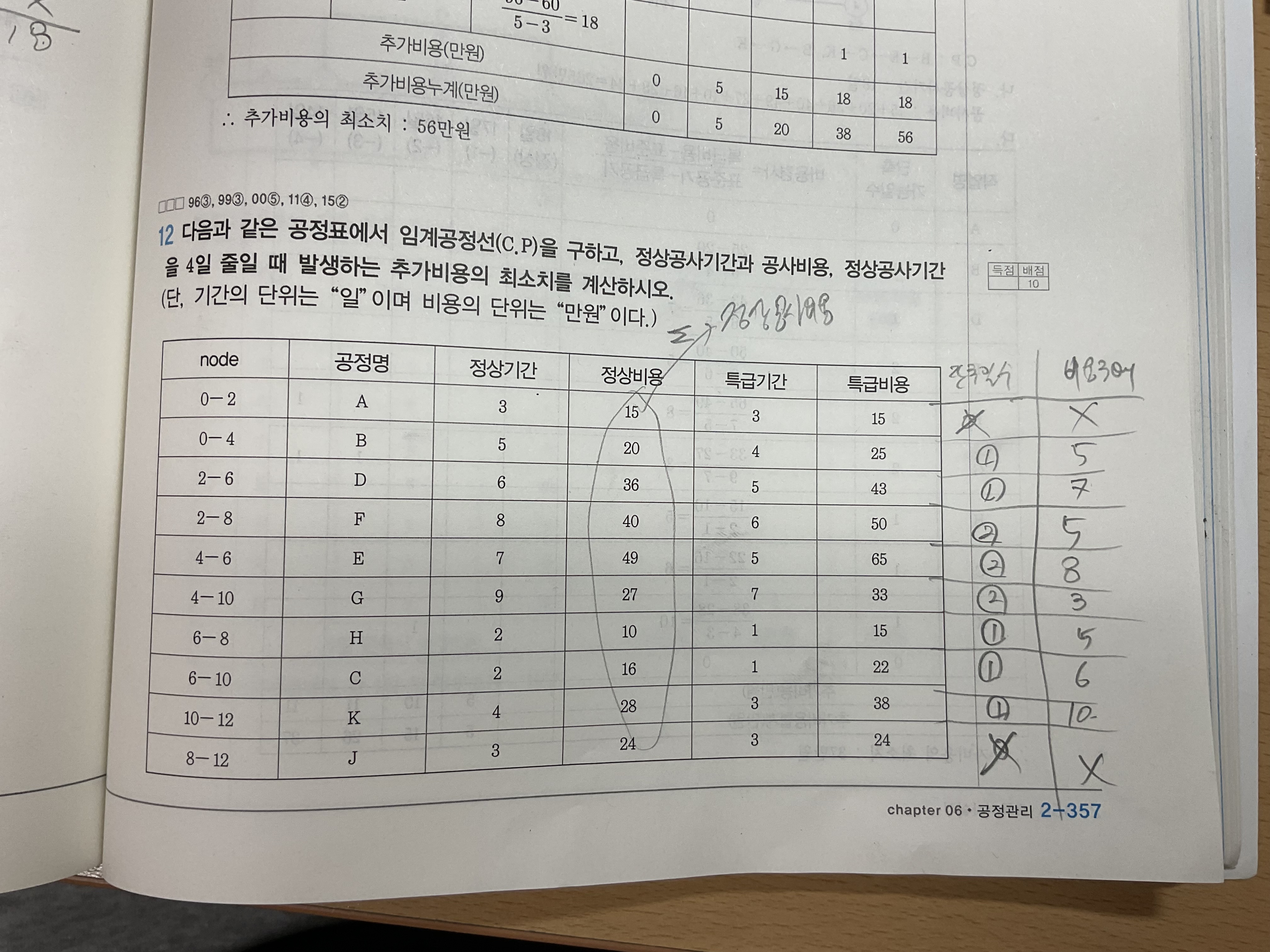 공정관리 2-357 쪽 12번 질문입니다