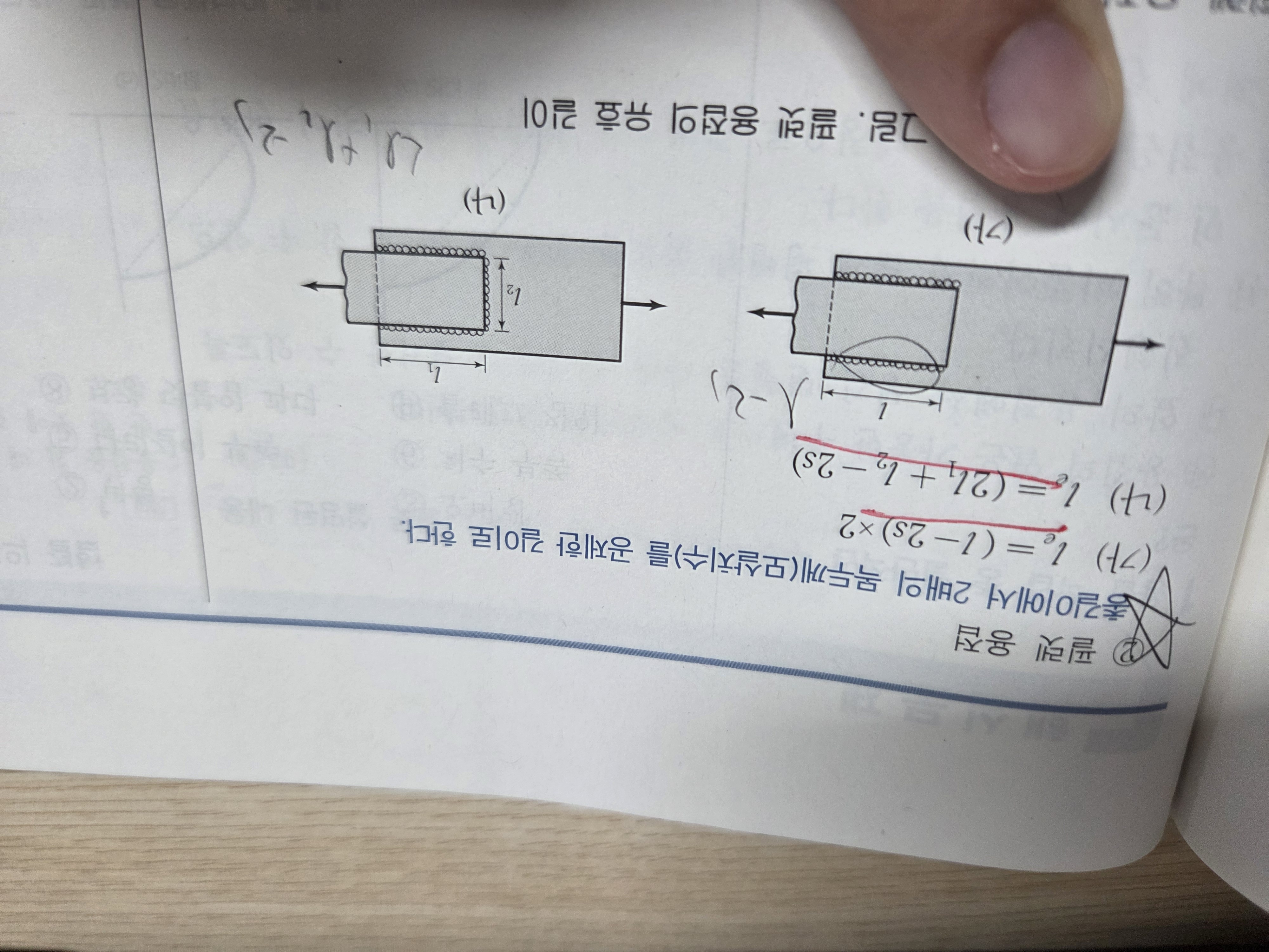 총길이에서 2배의 목두께를 공제한다면 (가)는 2l-2s가 맞지 않나요?