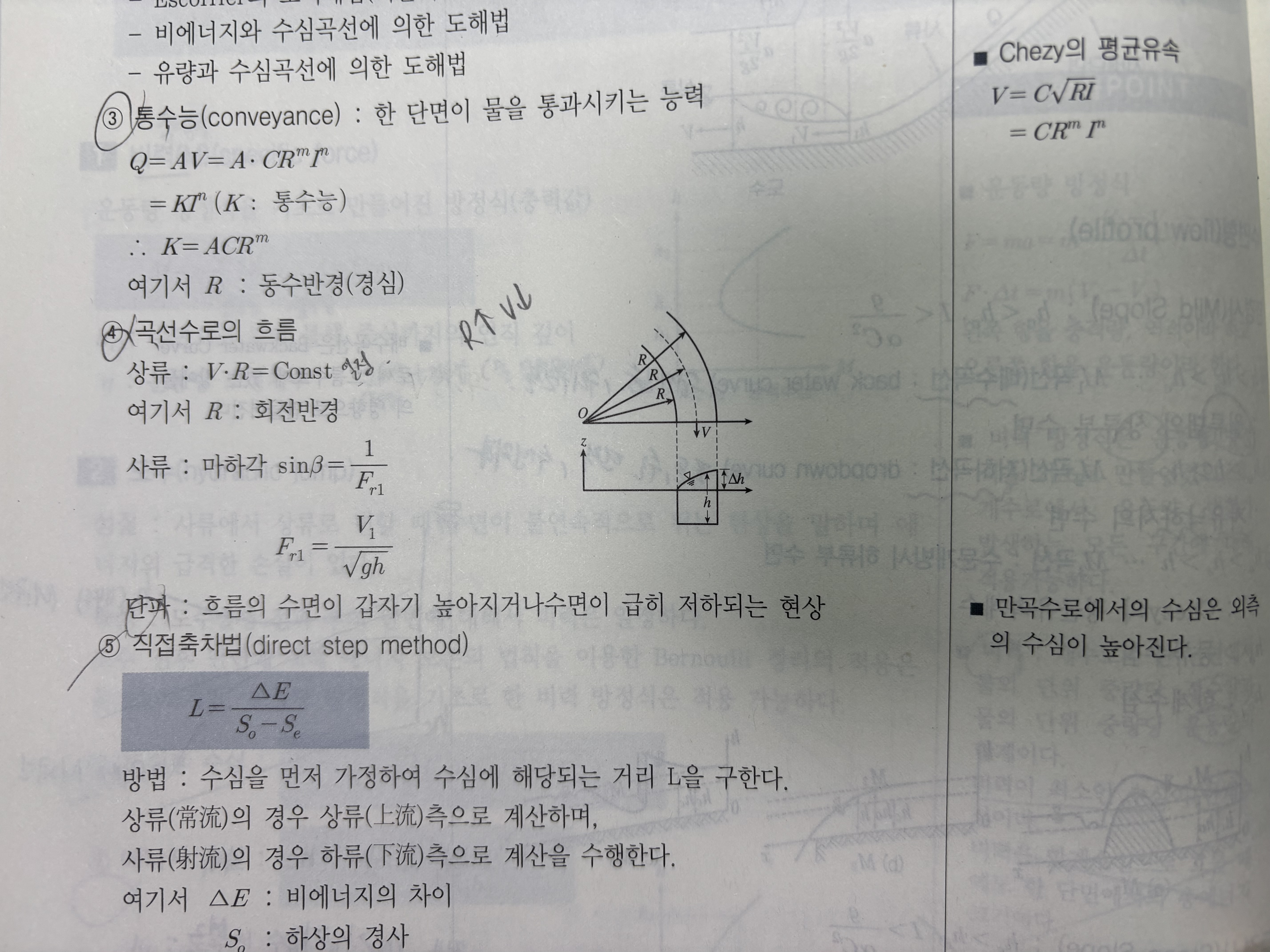 이 사진은 개수로 파트에서 곡선수로 내용입니다.