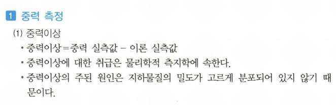 교재 1-56 페이지의 내용 중 아래 사진과 같이 중력이상 = 중력 실측값 - 이론 실측값 이라고 되어있는데