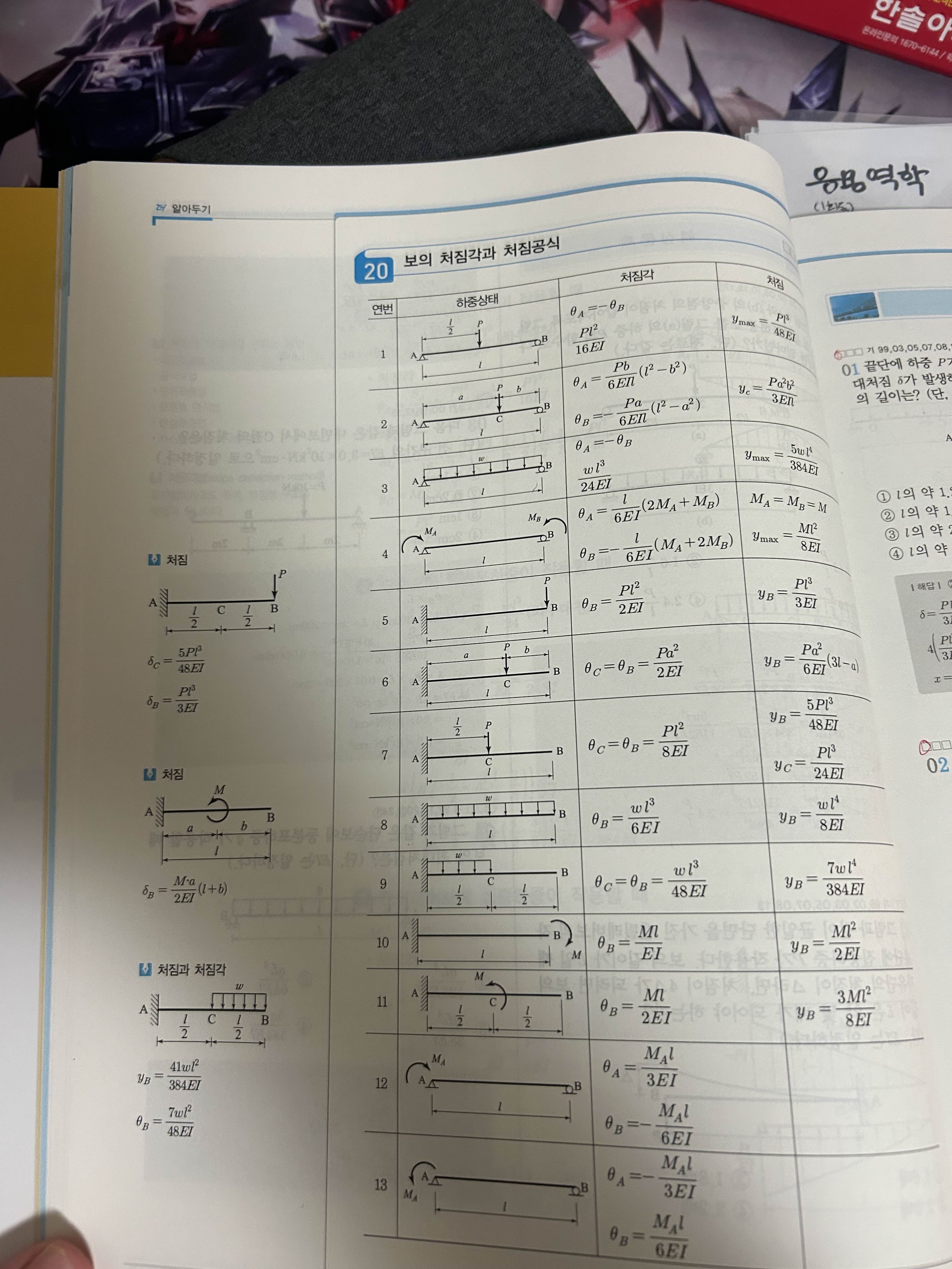 1-44페이지 2번 상황에서 처짐각 Θ-A에서 (pb)/(6EIl같은 문자로 추정)(l^2-b^2) 이런식으로 되어있는데 l같은 문자는 애당초 들어 가면 안되는 상황인데 들어가있네요. 확인 부탁드립니다.