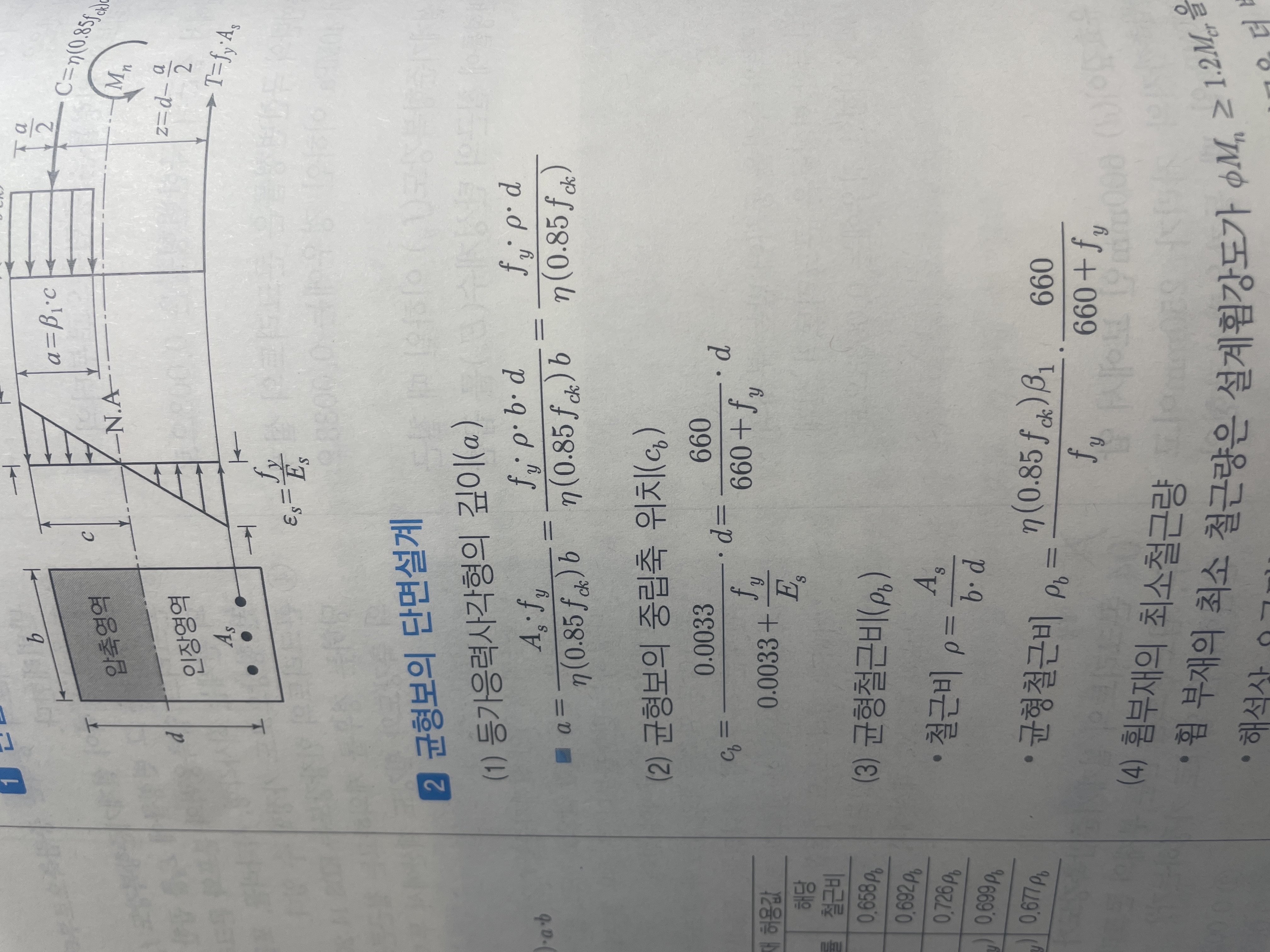 균형철근비 구하는공식에 대해 질문드립니다.