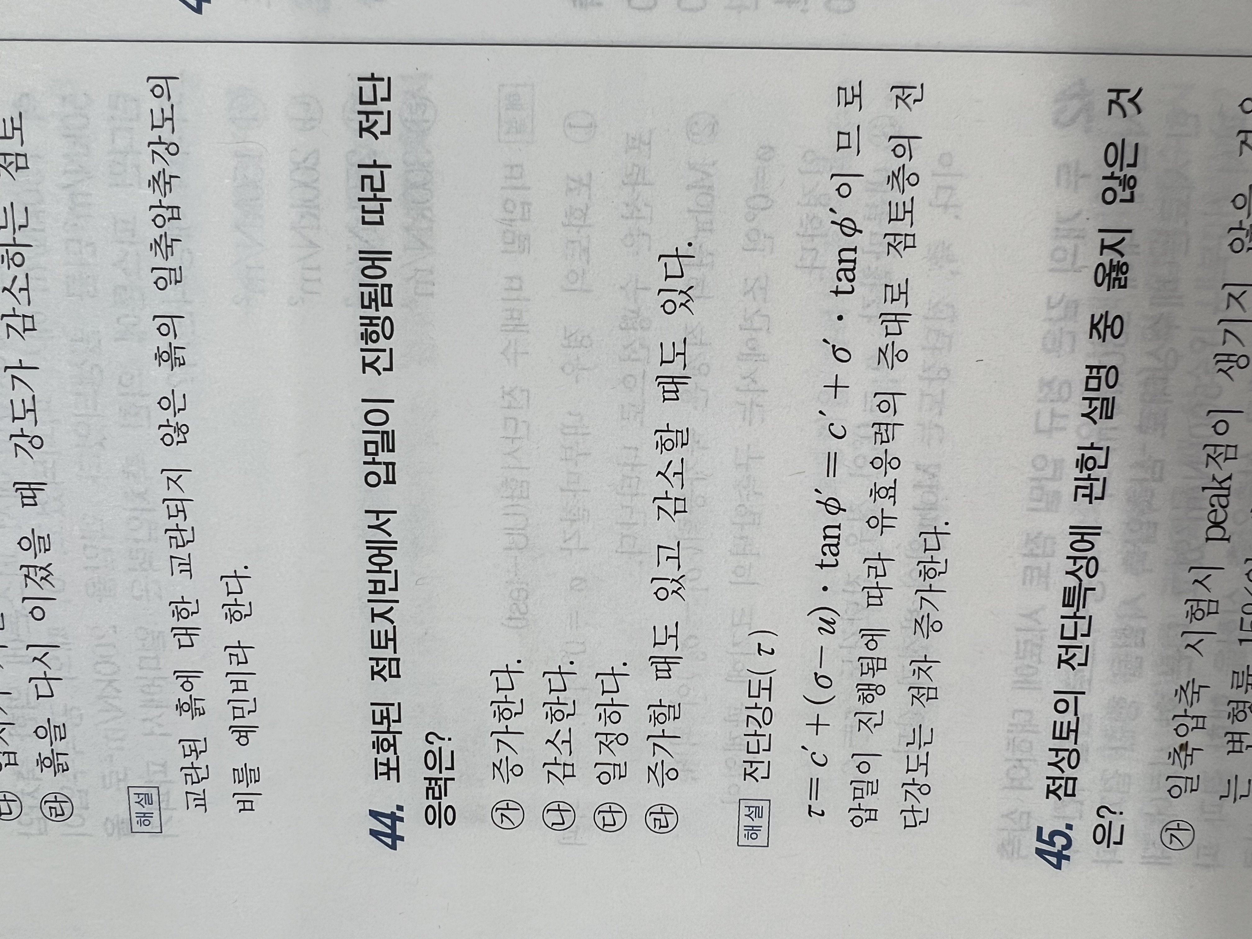 포화된 점토는 내부마찰각이 0이라 전단응력은 일정한 것 아닌가요?