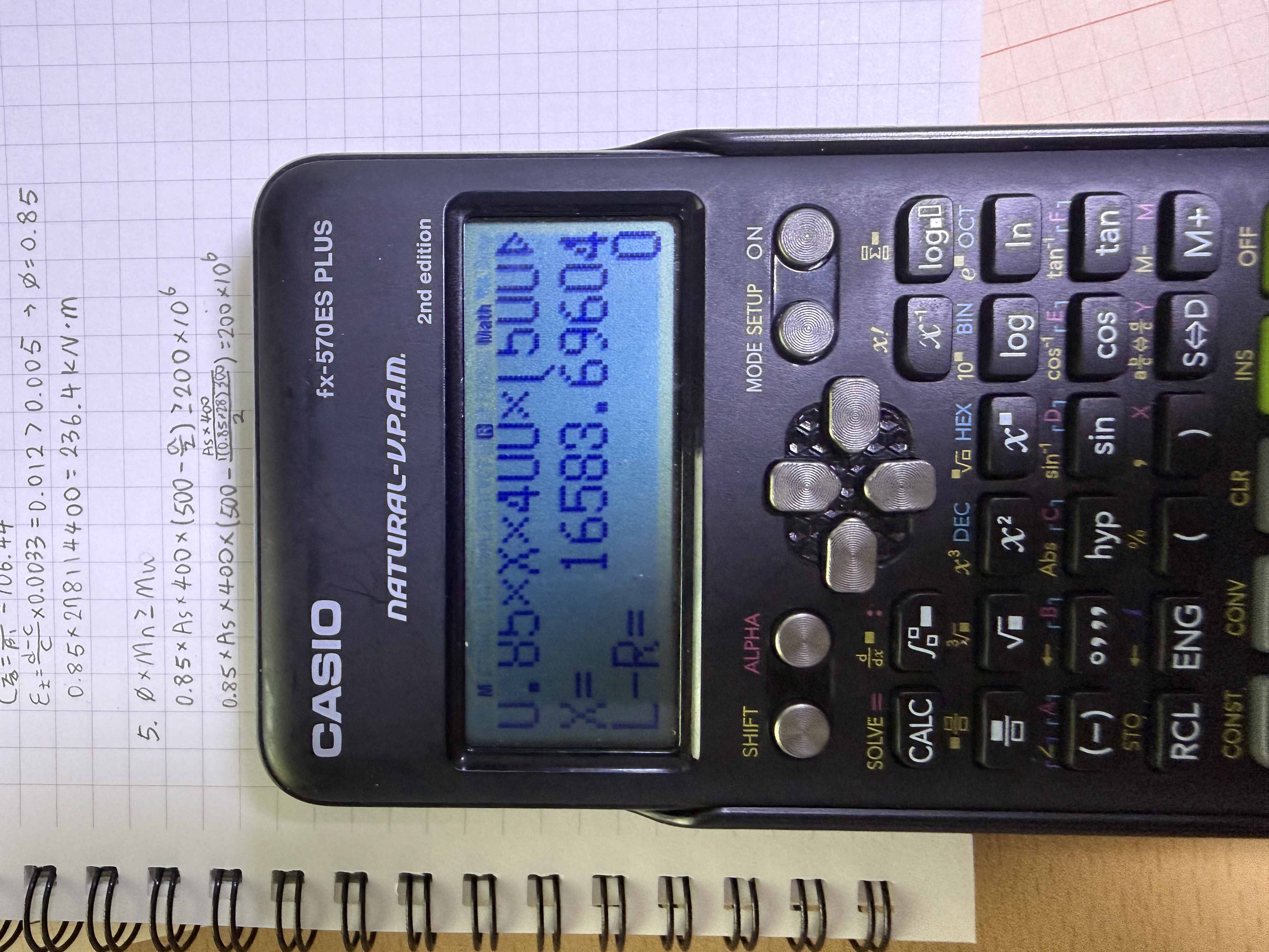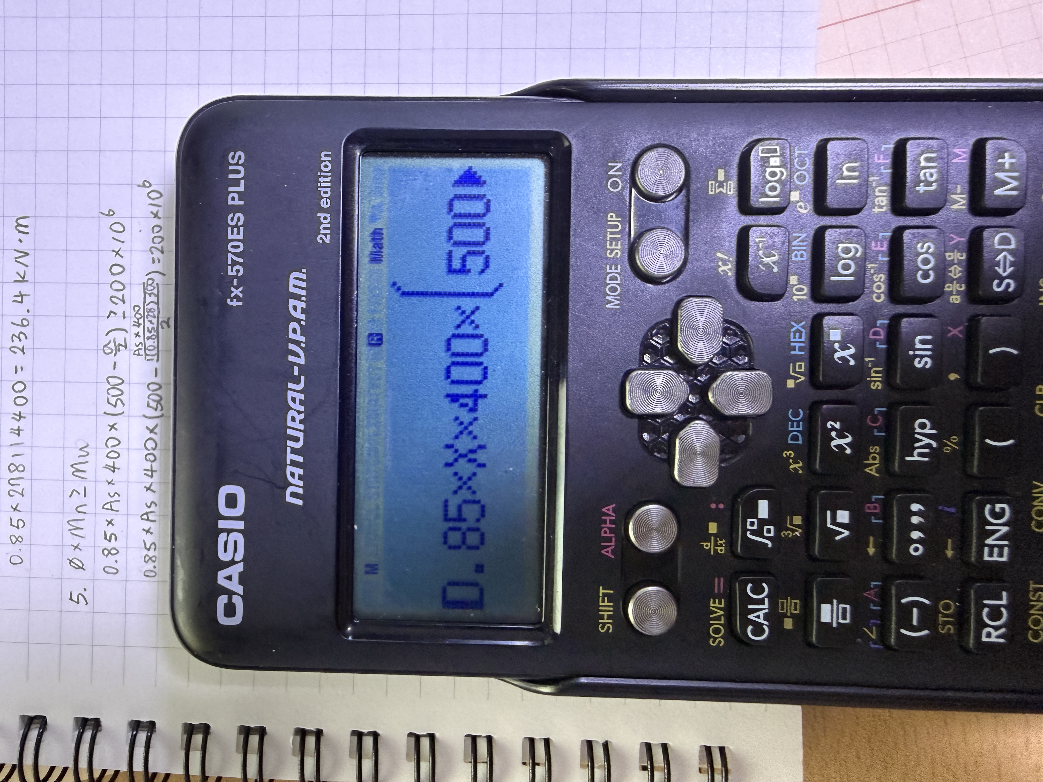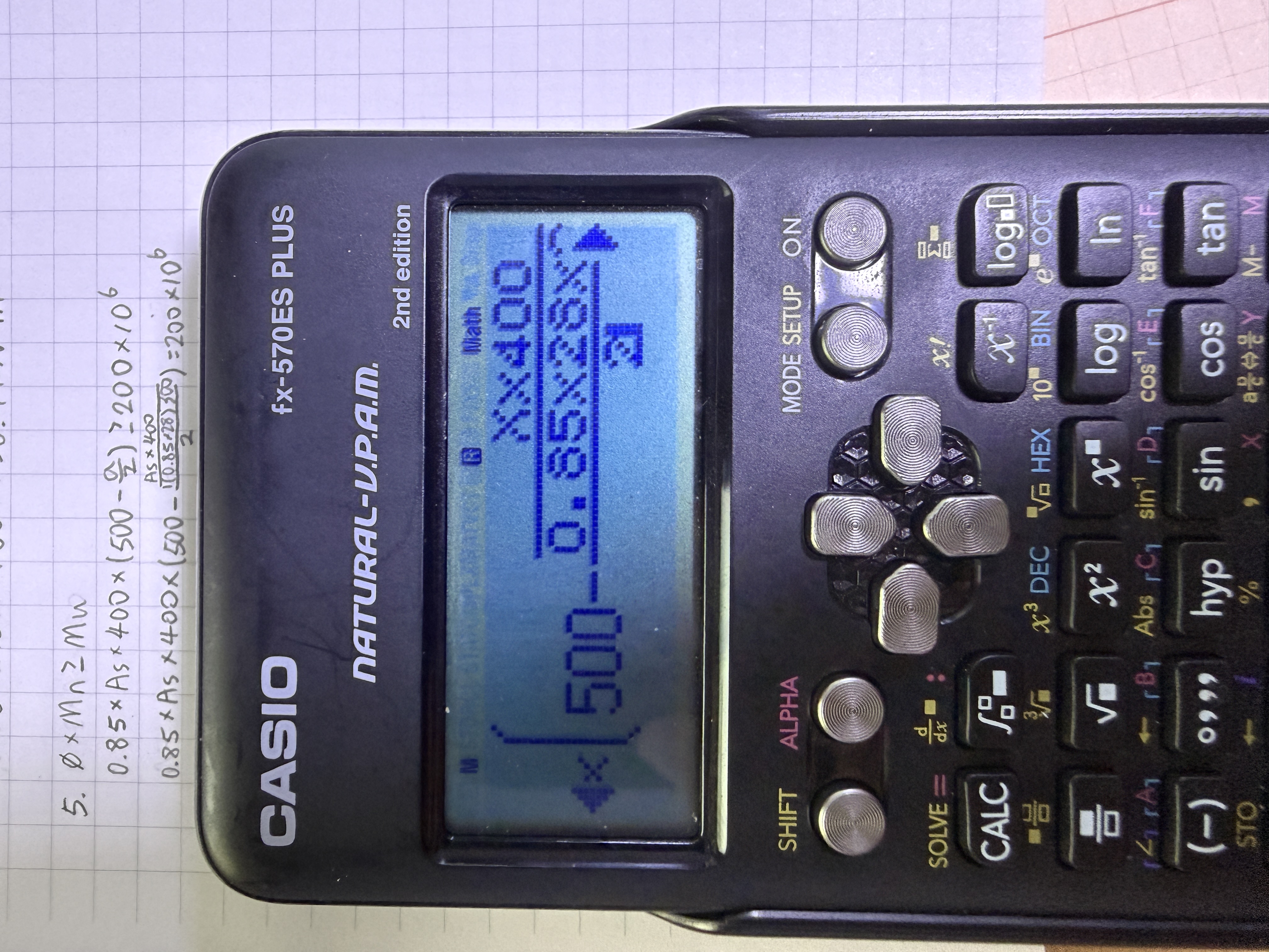 안녕하세요 철근콘크리트 5장 핵심문제 5번을 풀이대로 계산기에 입력하였는데 계속 답이 16583으로 이상하게 나오는데 계산기 입력과정에서 문제가 있는 것인지 궁금합니다. 답인 1266.3을 As자리에 넣어서 계산하면 원하는 값이 나오는데 solve 기능을 사용했을 때는 값이 안 나와서 여쭤봅니다.