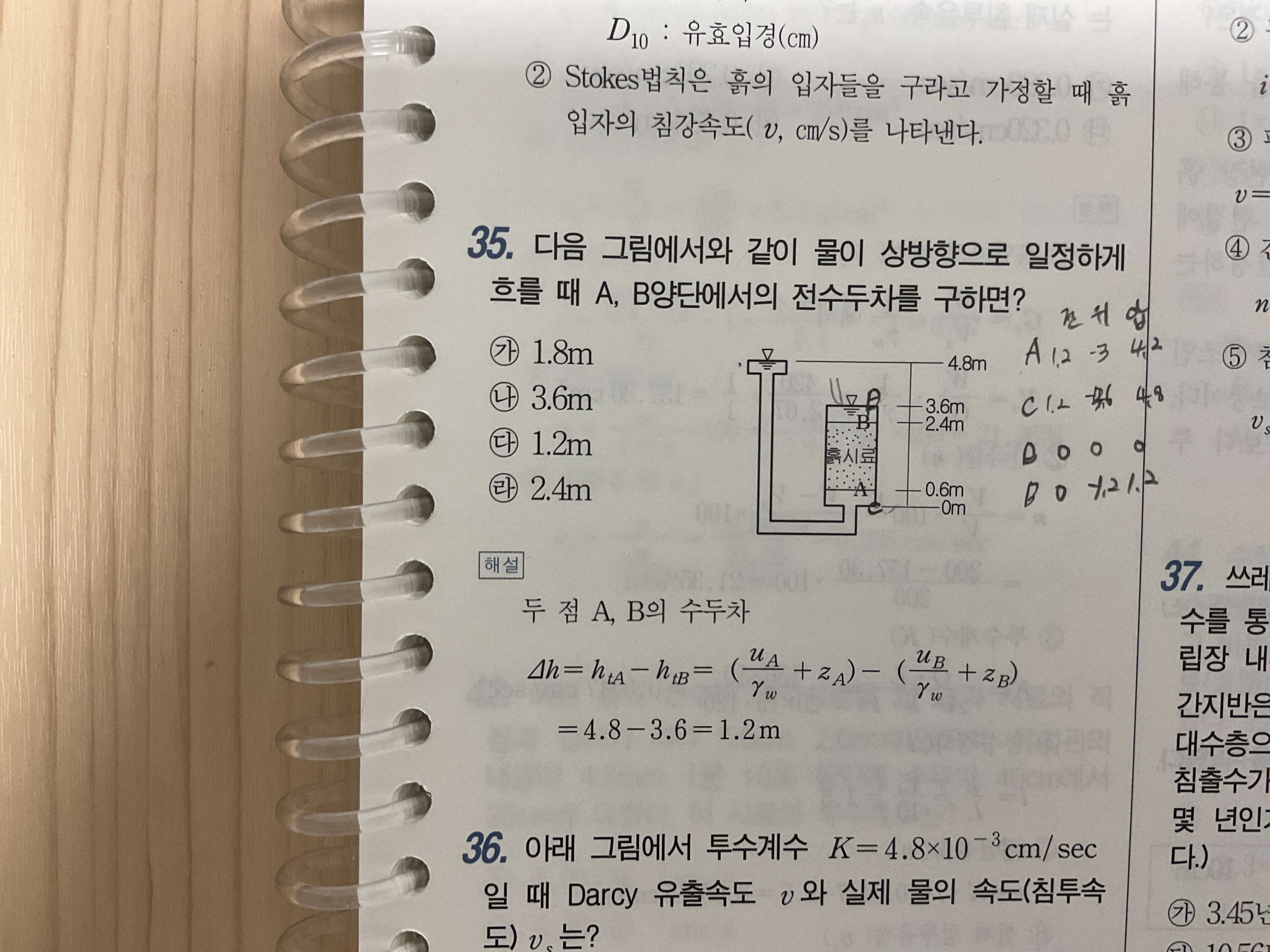 2. 그럼 기준면을 3.6을 0으로 두고 가정하면 = D에서 전수두가 0이므로 B도 전수두가 0으로 나오고 A점은 c점의 전수두와 같아서 1.2 나오나요!