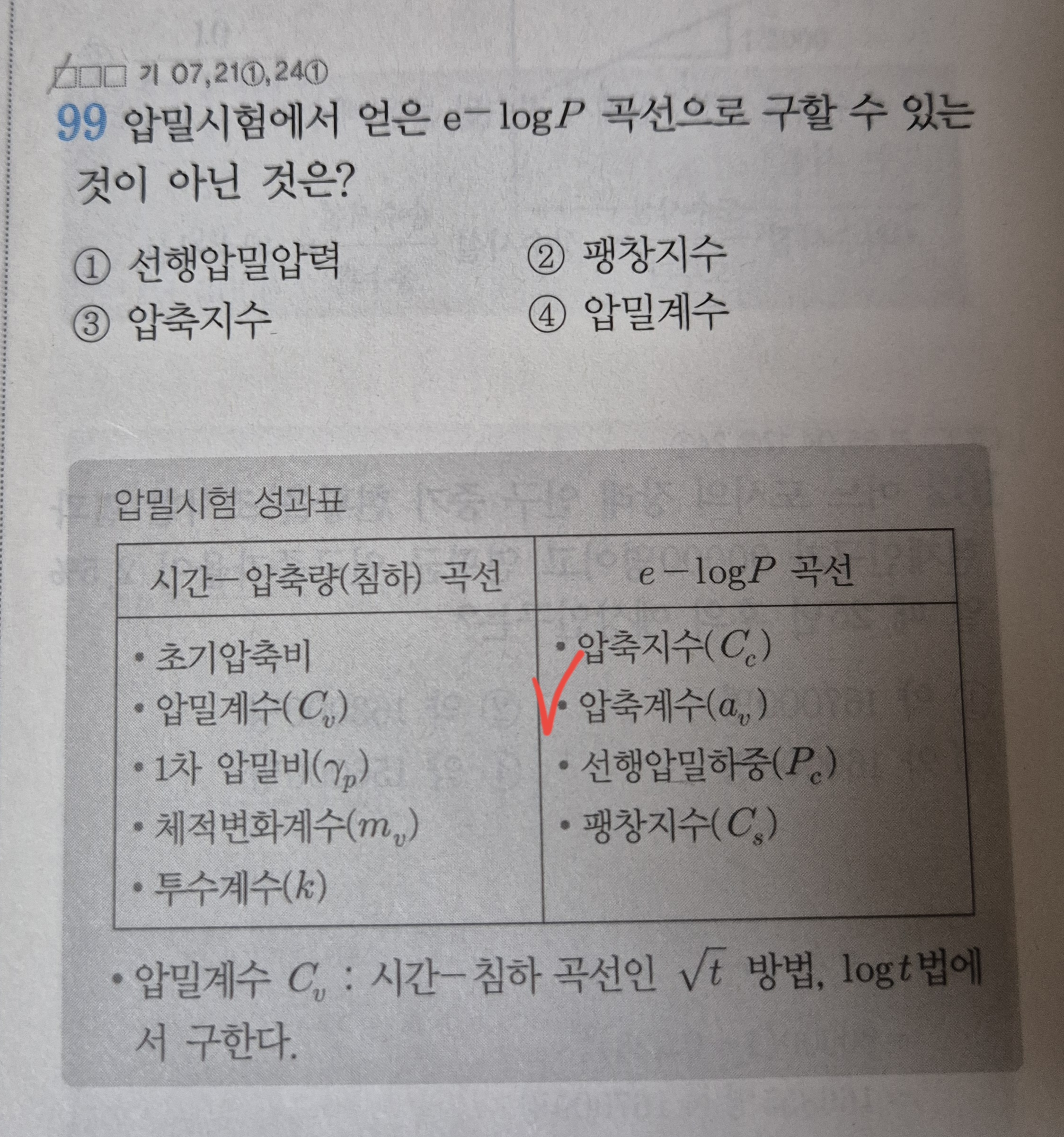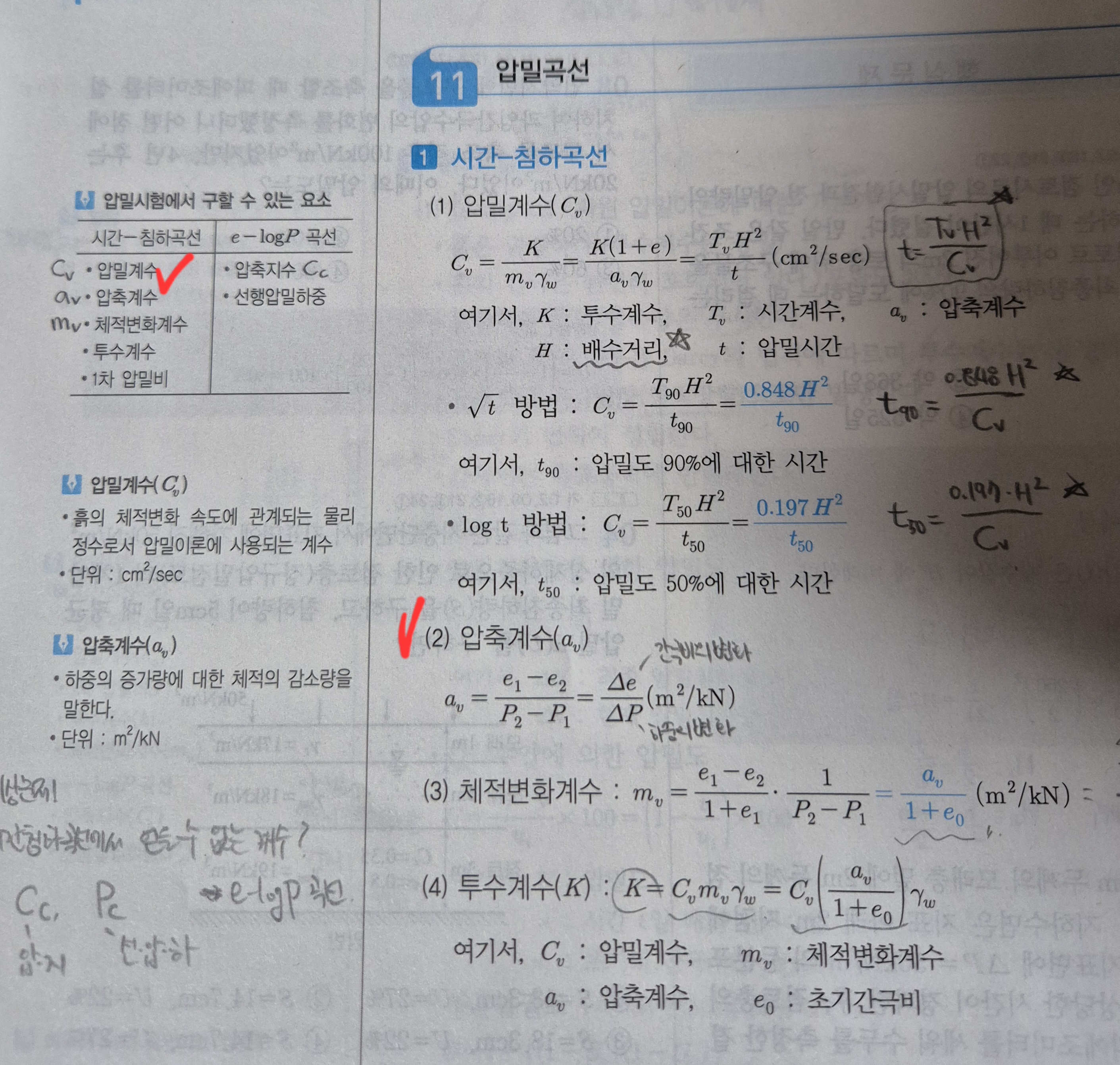 시간-침하 곡선에서 '압축계수' 를 구할 수 있다고 나와있습니다