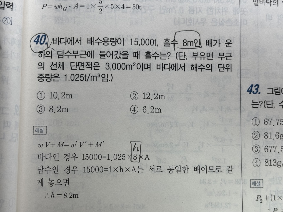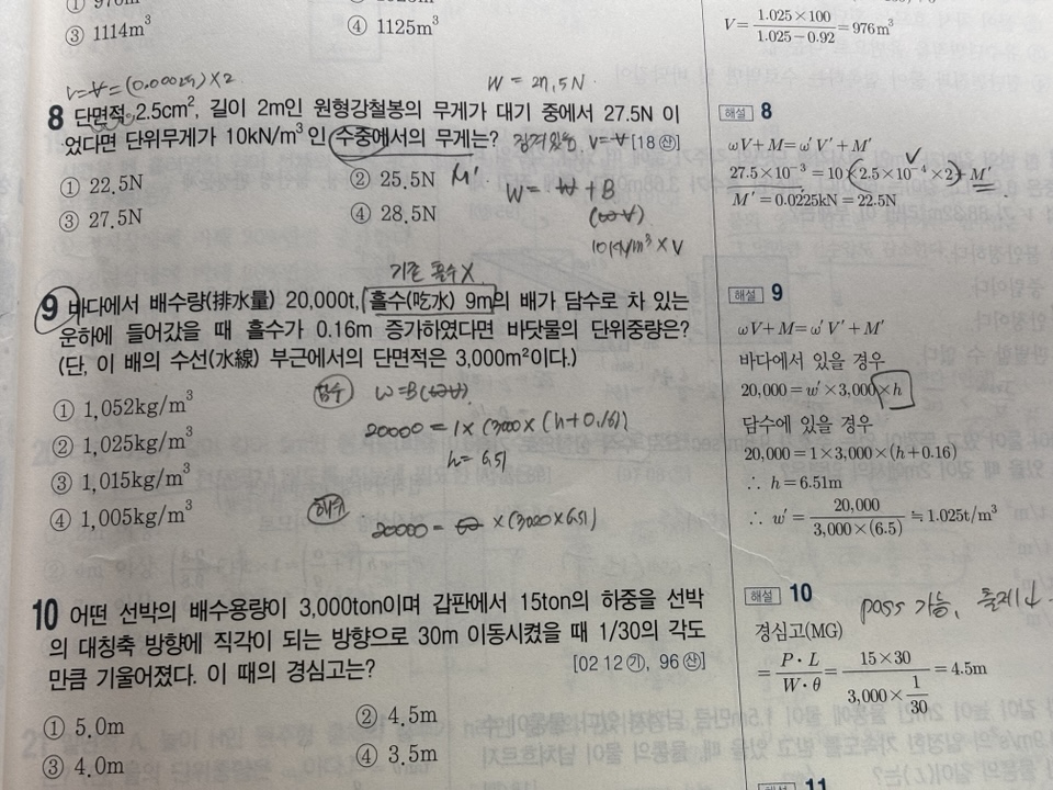 흘수 9m인 내용없이 문제를 푸셔도 가능합니다.
