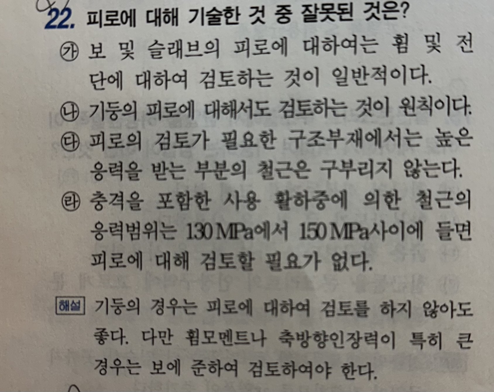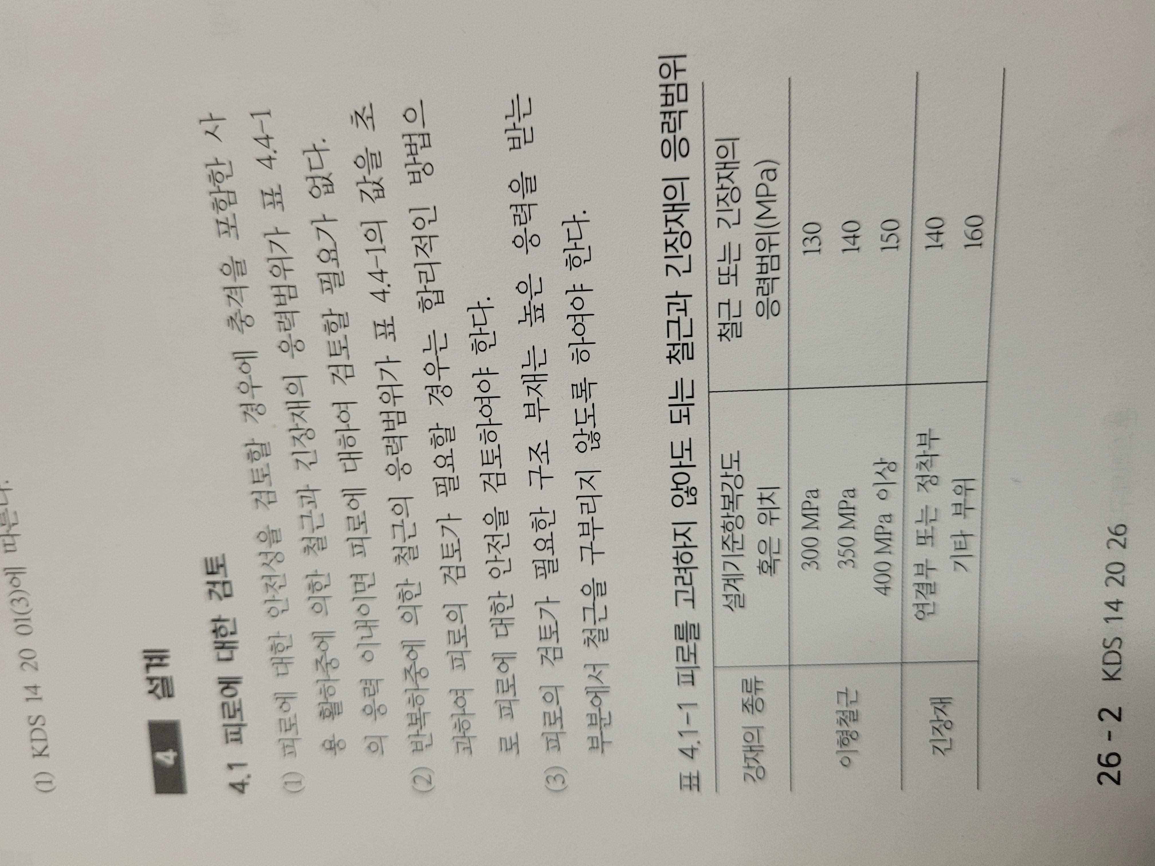 피로를 고려하지않아도 좋은 철근의 응력범위를 보면