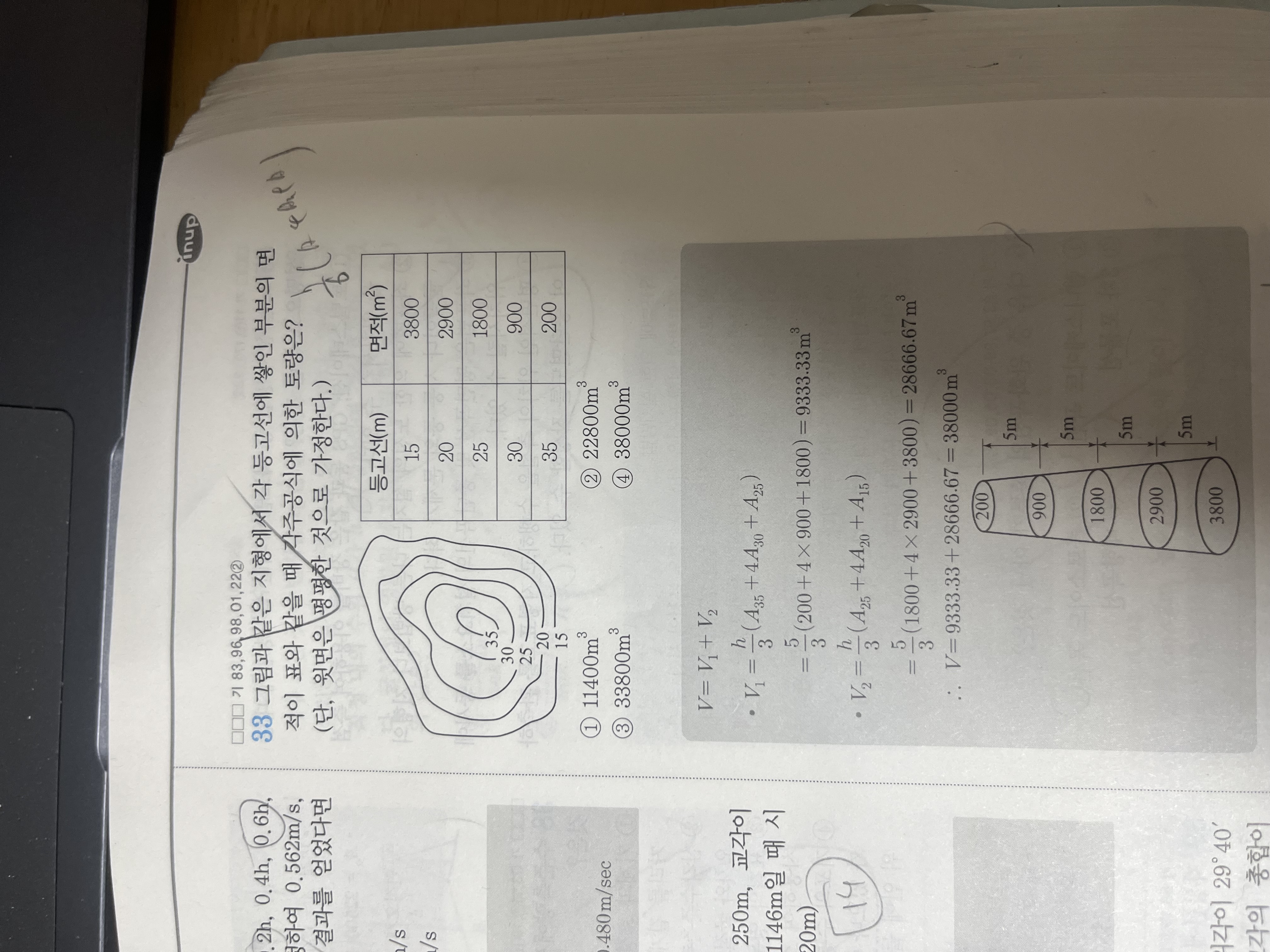 18년도 과년도 풀때는 각주공식을 쓸때 전체길이로 썼는데 22년도 과년도 풀때는 h를 측정간격으로썼는데 무슨 차이인가요