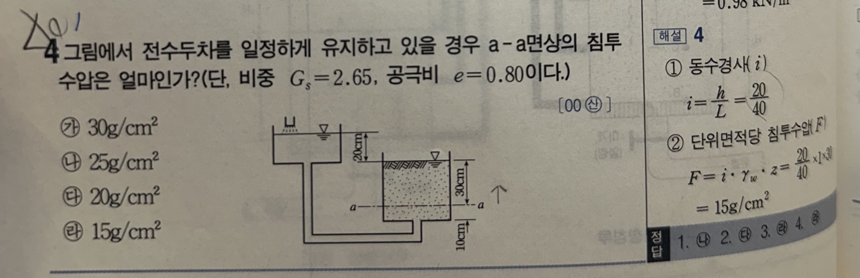해당내용은 온라인 토질및기초 강의 중 흙의 투수성과 동해 단원에서 상향침투 파트를 다시 정리하기 바랍니다.
