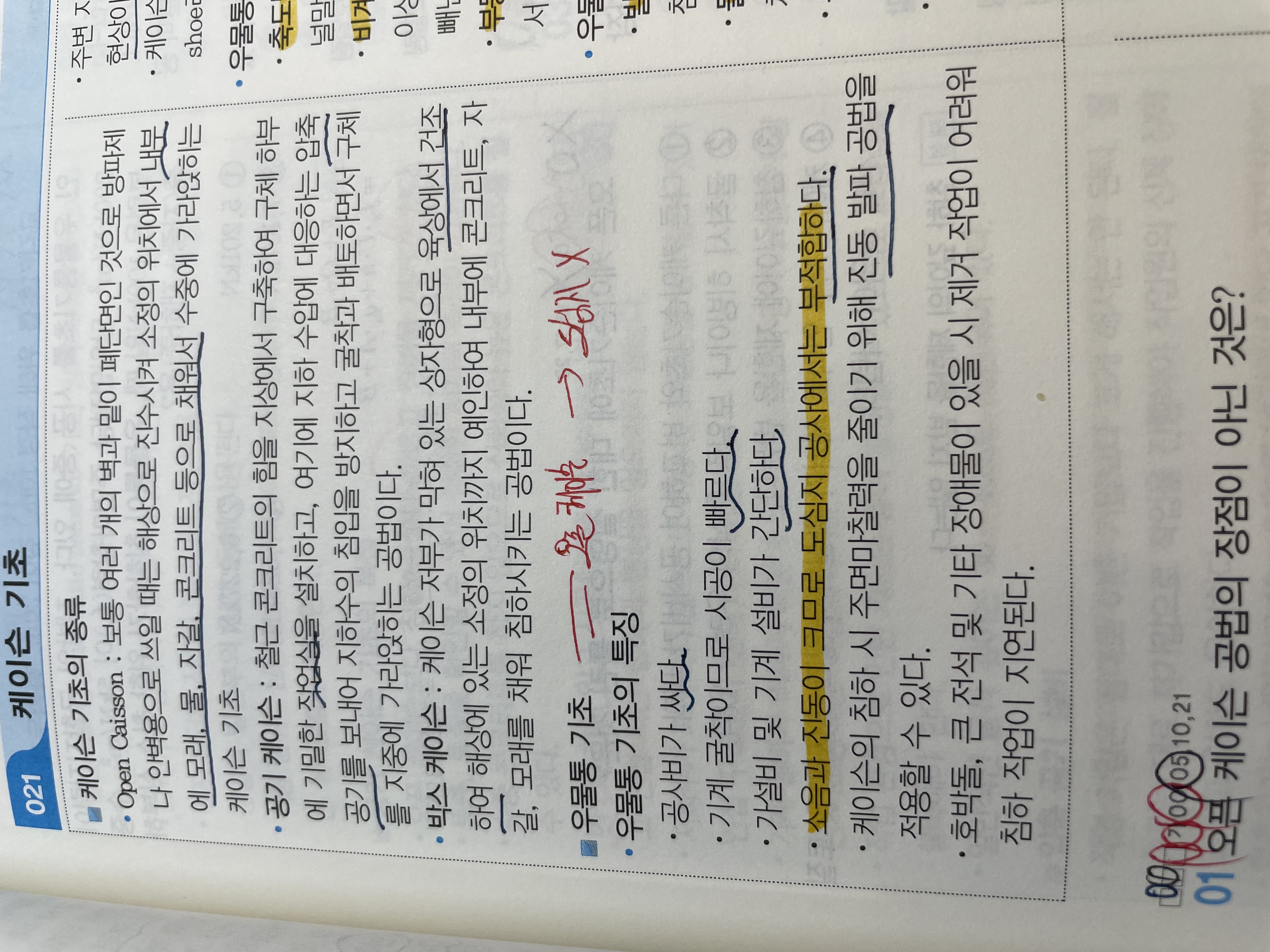 따라서 두 교재의 특징은 서로 상반되는 내용이지만 저자마다 보는 관점(항타기를 이용해서 기초를 지반에 박는 것이 아닌 경우, 내부 토사를 굴착하는 경우 대형장비를 이용하는 경우)을 다르게 설명해놓은 것입니다.