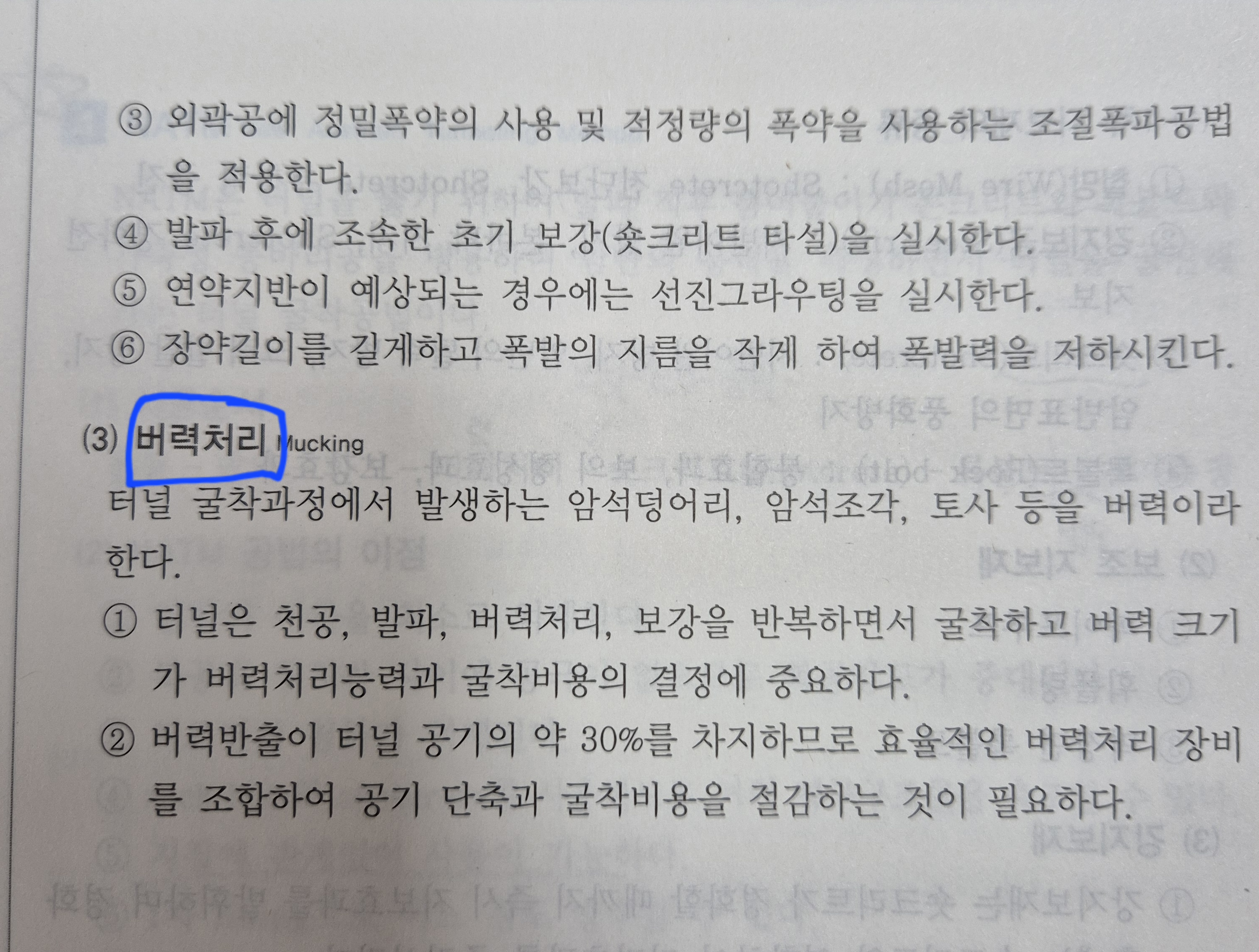 강의 중에는 '버럭처리' 라고 알려주셨는데, 교재에는 '버력처리' 라고 되어 있어서..