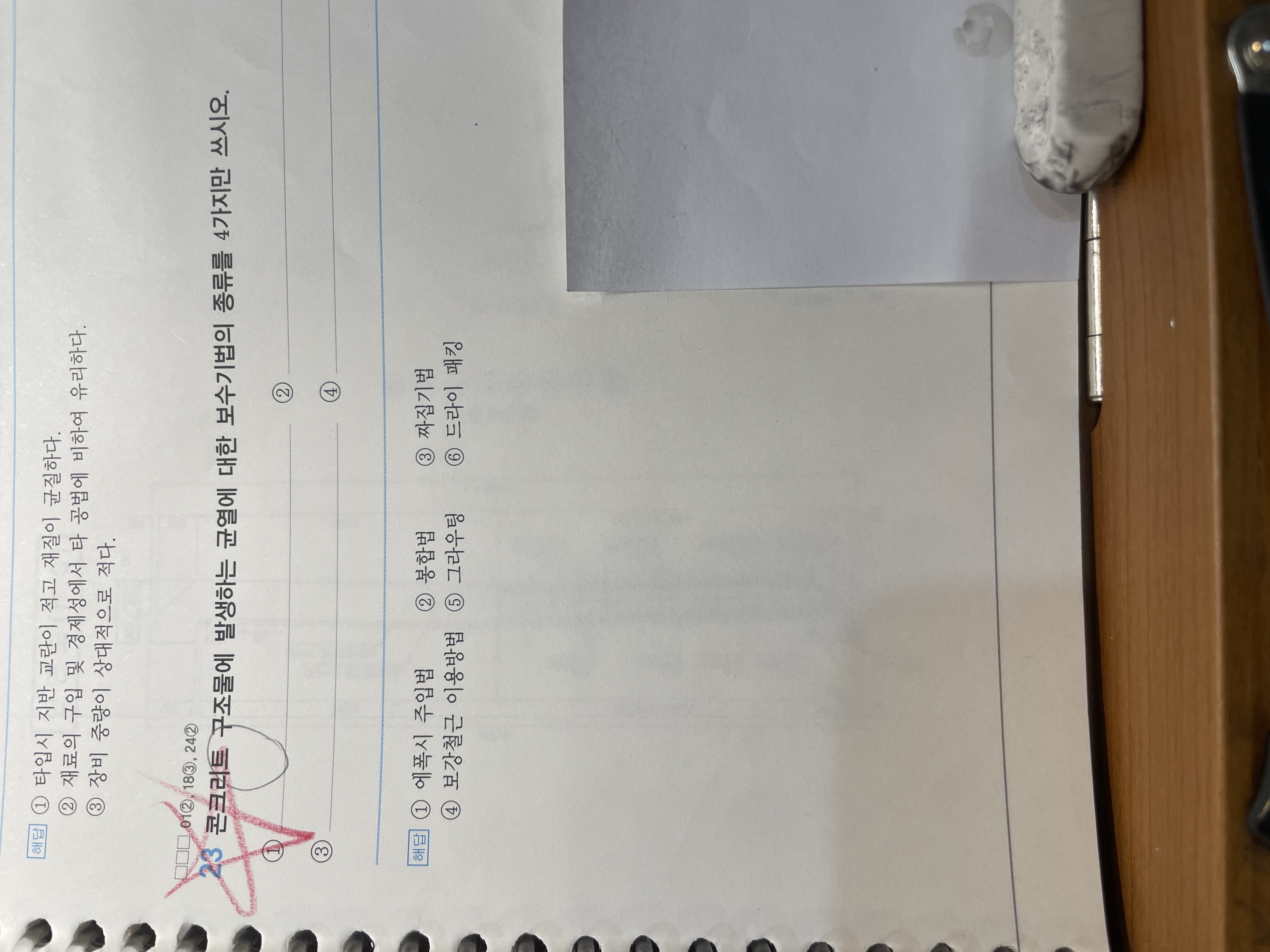 추가적으로 첫번째 사진의 보수공법의 답안은 오류가 있습니다.
