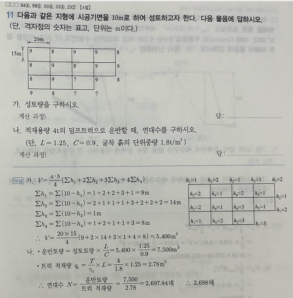 위 문제 사진에서 성토하고자하는 흙이기 때문에 점고법으로 구한 값이 다짐이 완료된 흙이 됩니다.